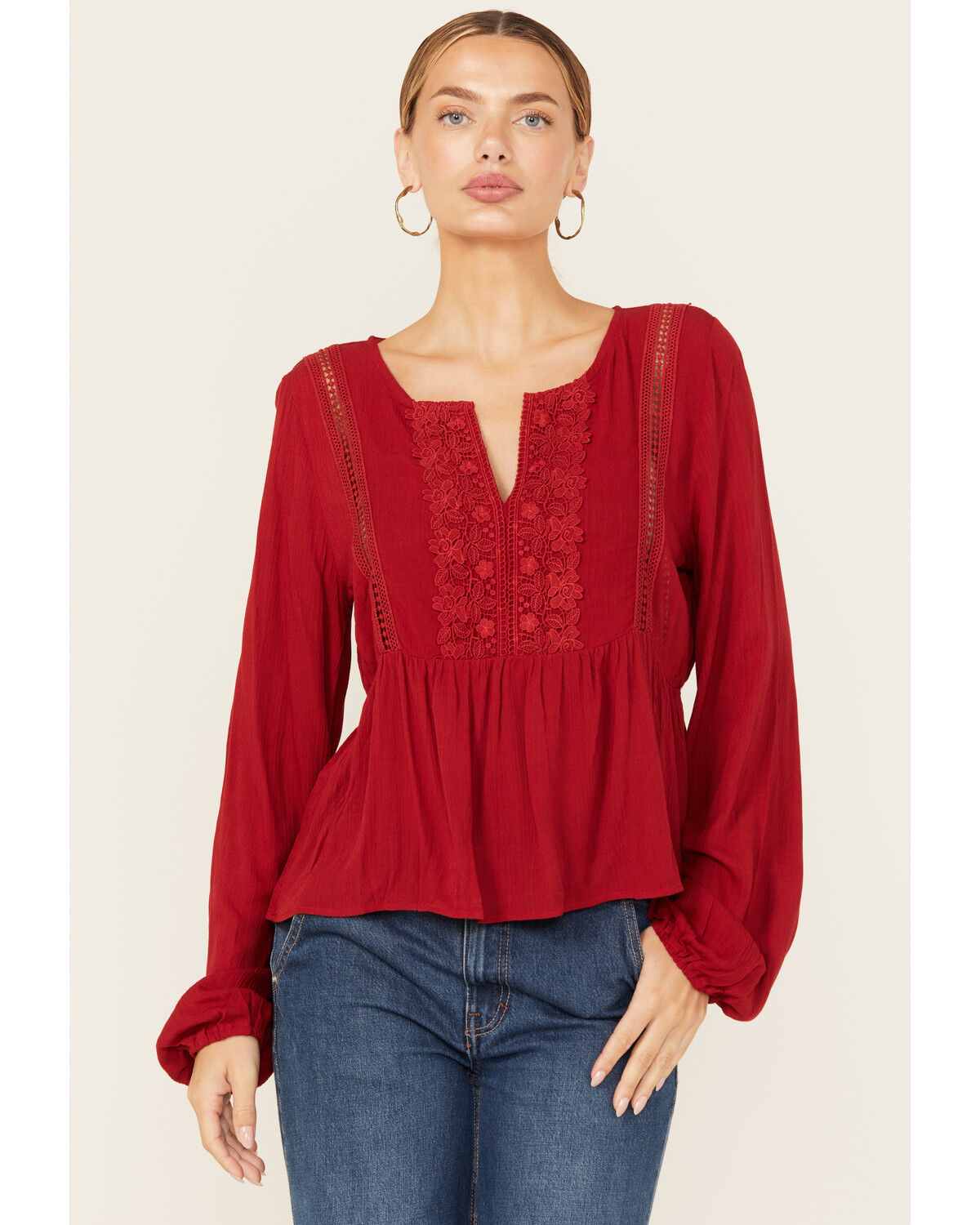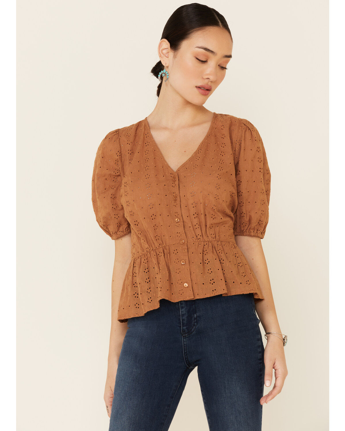Wishlist Women's Eyelet Peplum Short Sleeve Top