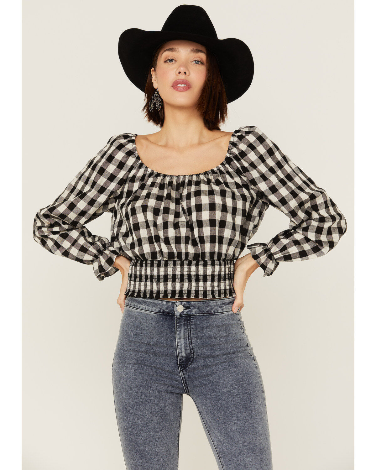 Beyond The Radar Women's Gingham Tie Back Smocked Blouse