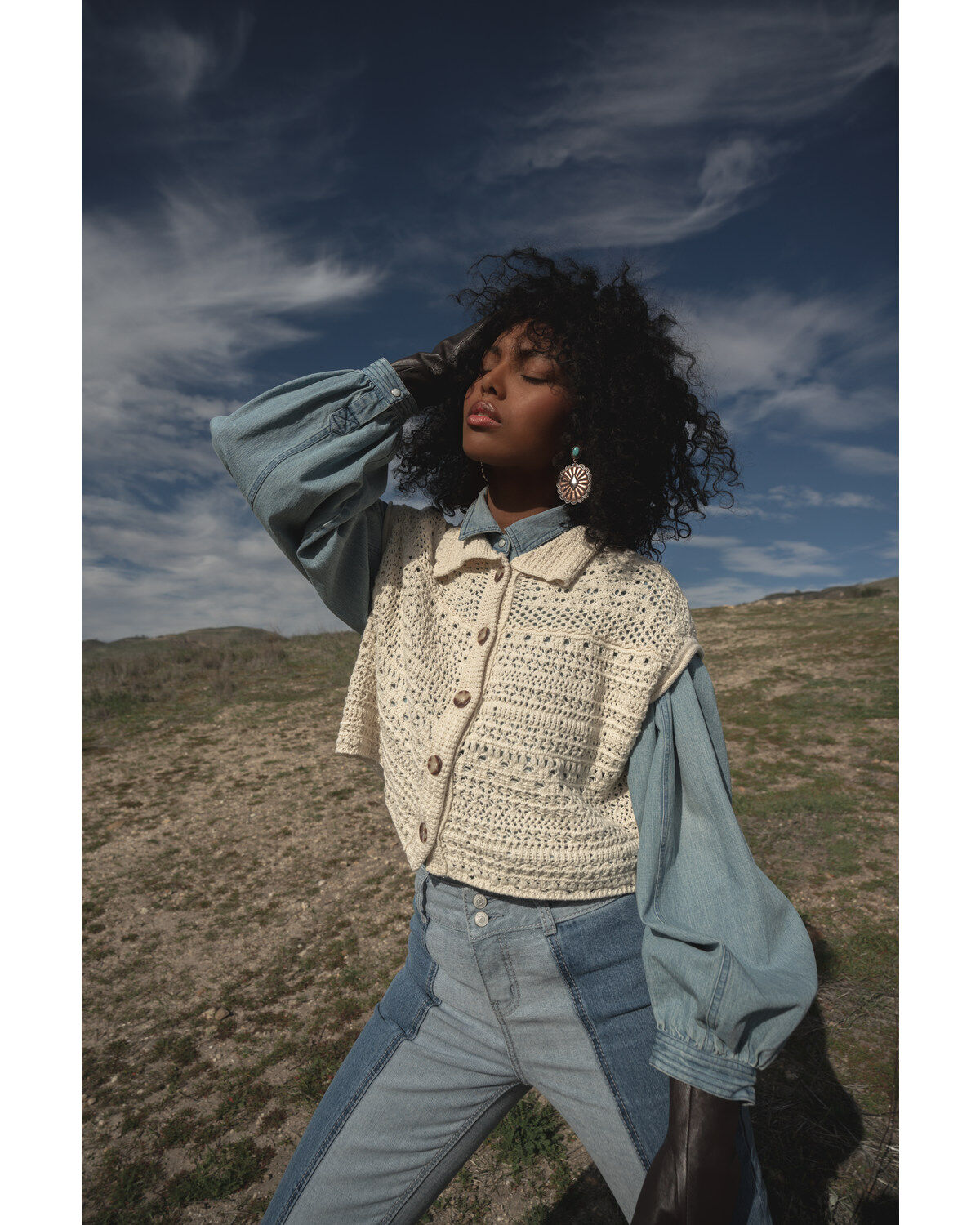 Wild Moss Women's Mixed Media Lace Top