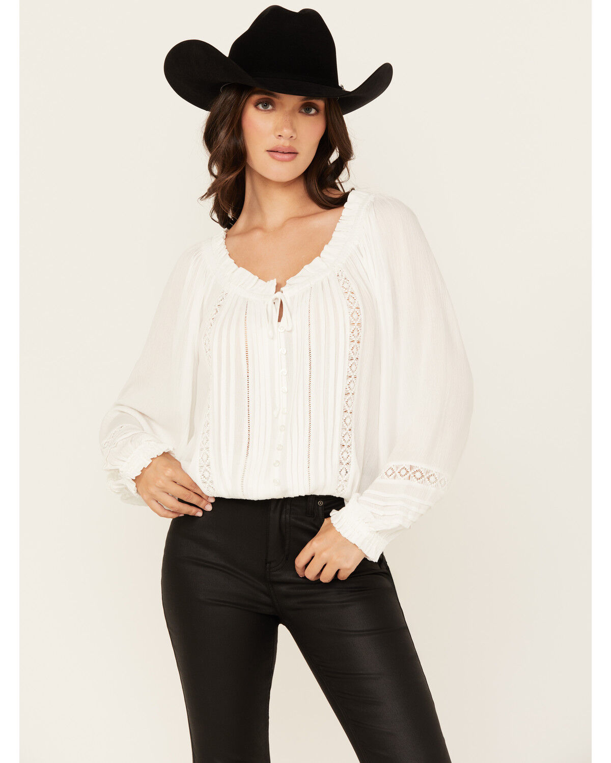 Wild Moss Women's Lace Detail Peasant Top