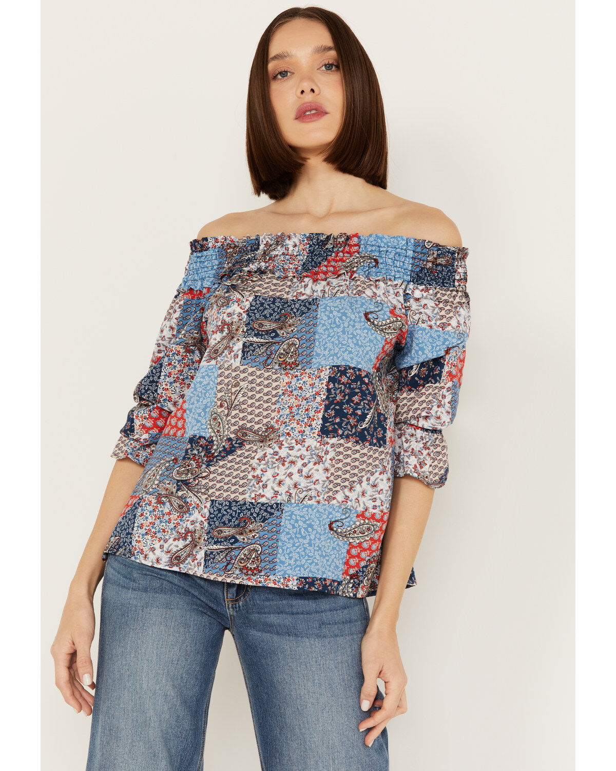 Wild Moss Women's Patchwork Print Off The Shoulder Top