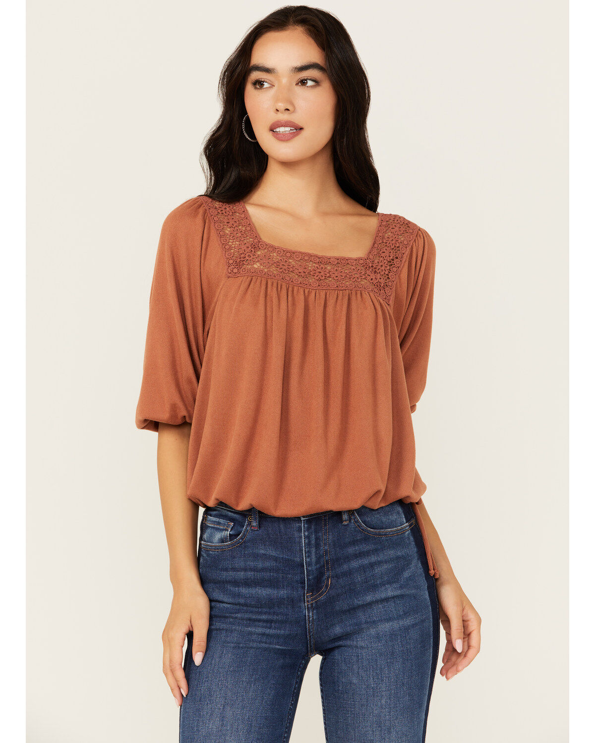 Wild Moss Women's Crochet Trim Top