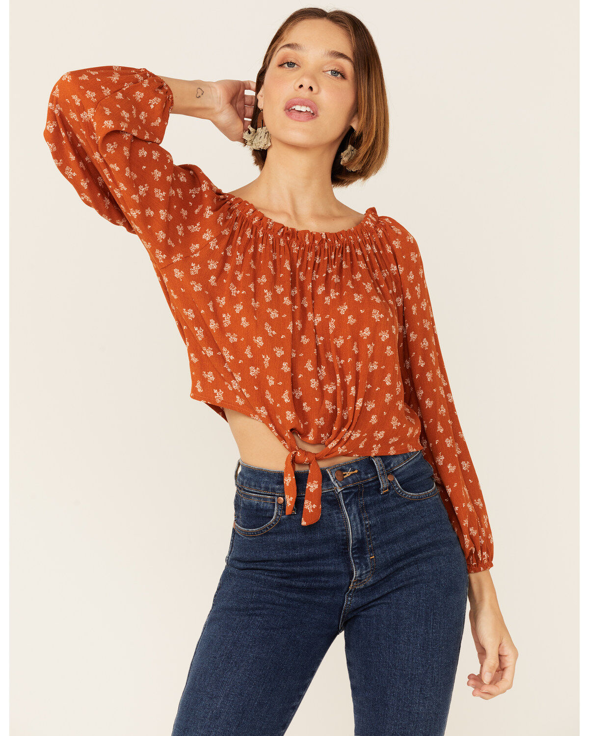 Wild Moss Women's Floral Off The Shoulder Tie-Front Top