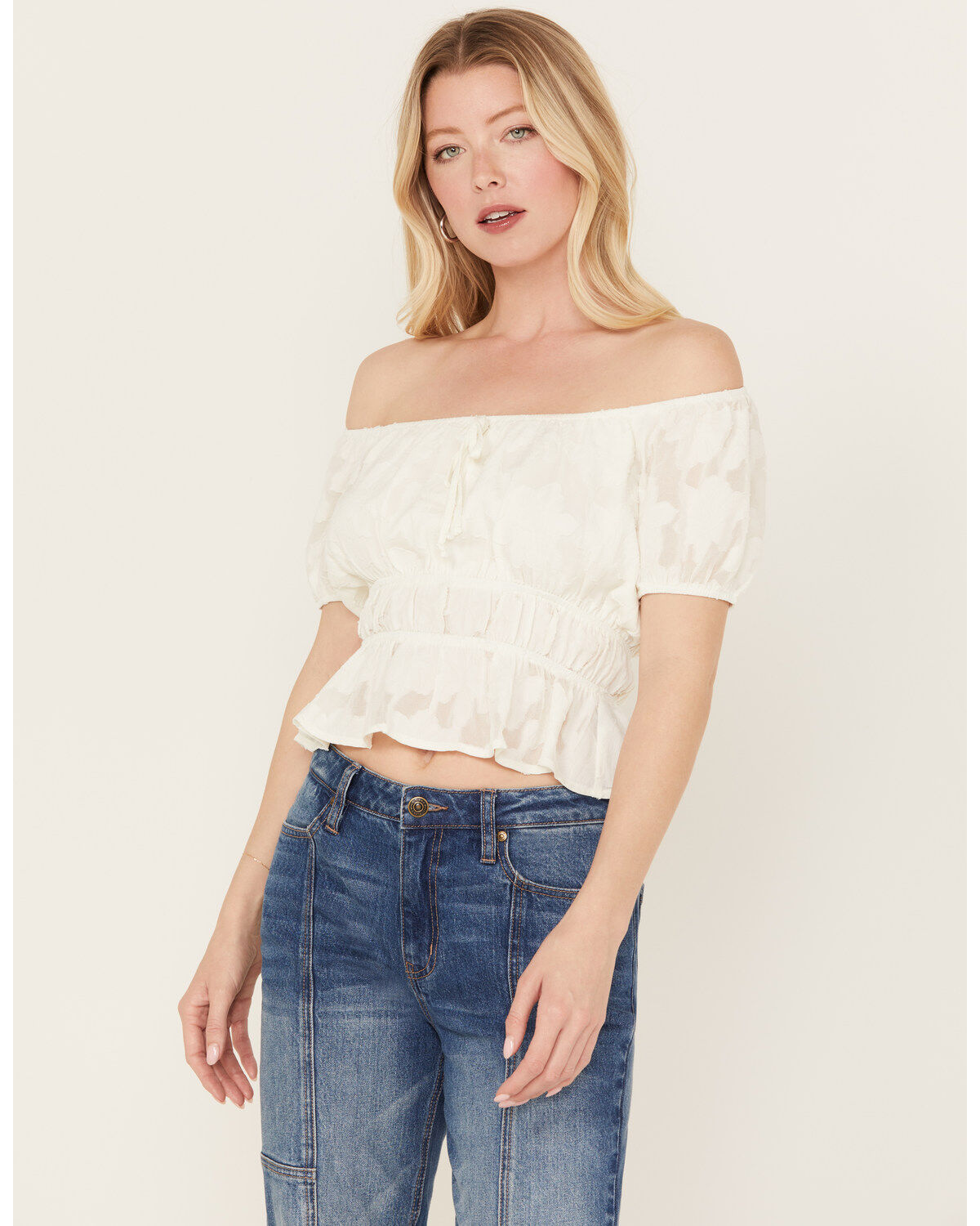 Trixxi Women's Cropped Jaquard Top