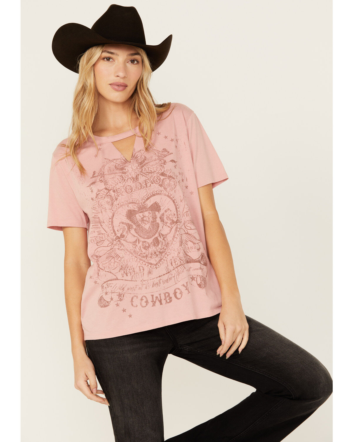 Blended Women's Rodeo Cowboy Cutout Short Sleeve Graphic Tee
