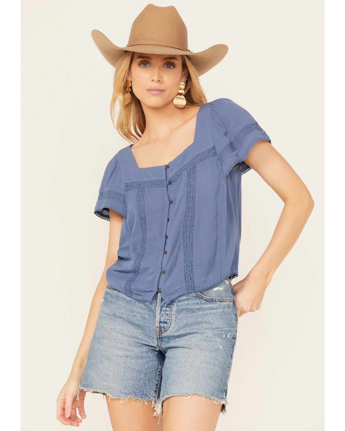 Jolt Women's Peasant Short Sleeve Button-Down Shirt