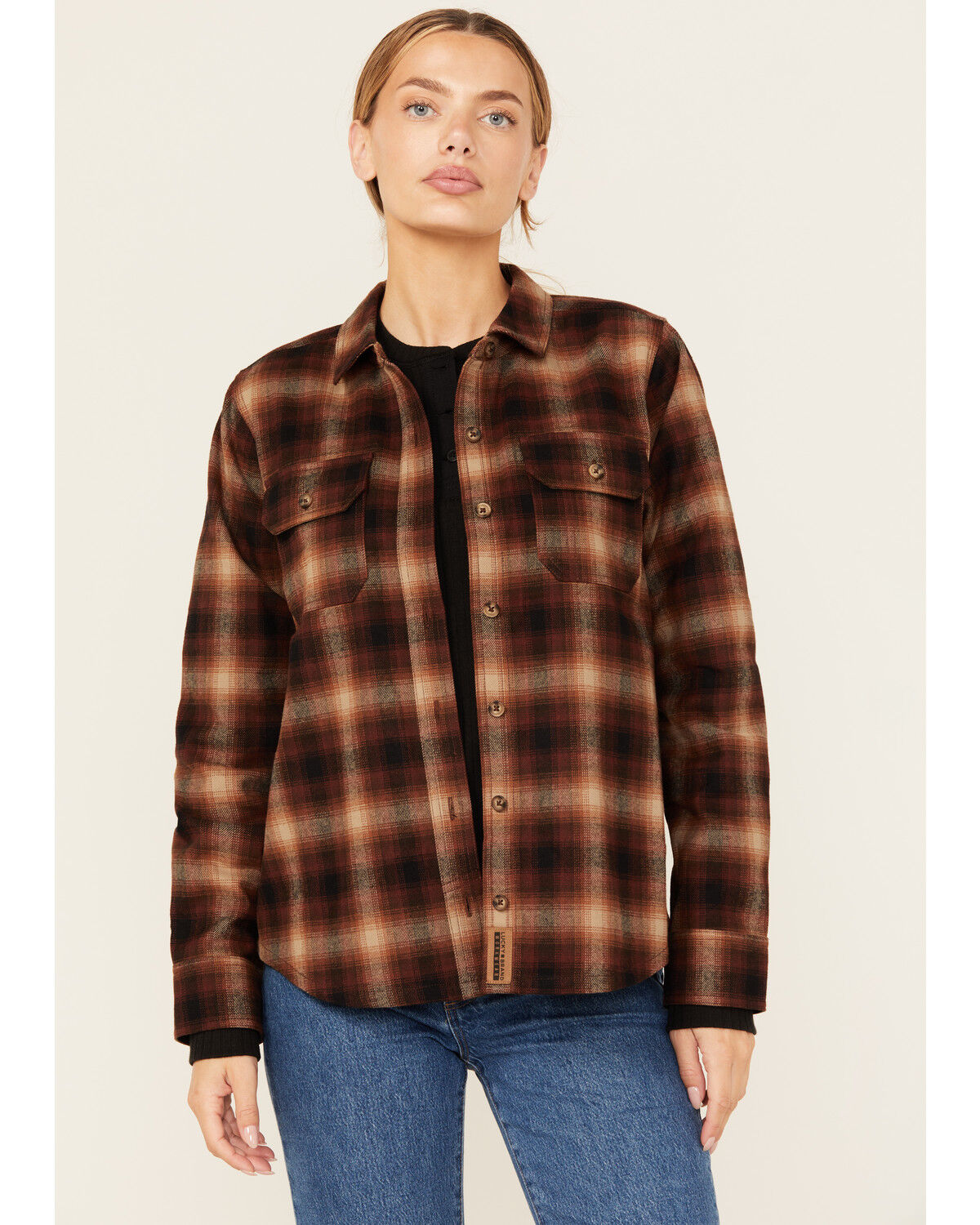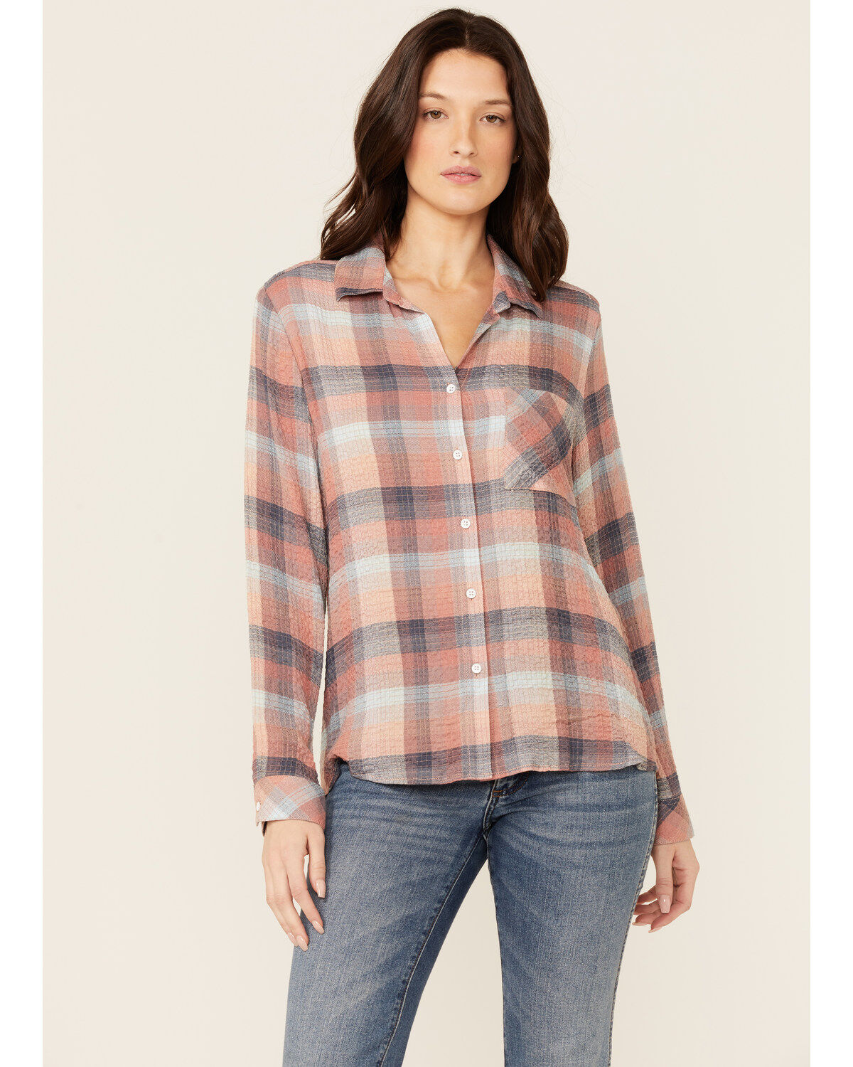 North River Women's Crinkle Ryn Desert Rust Plaid Shirt