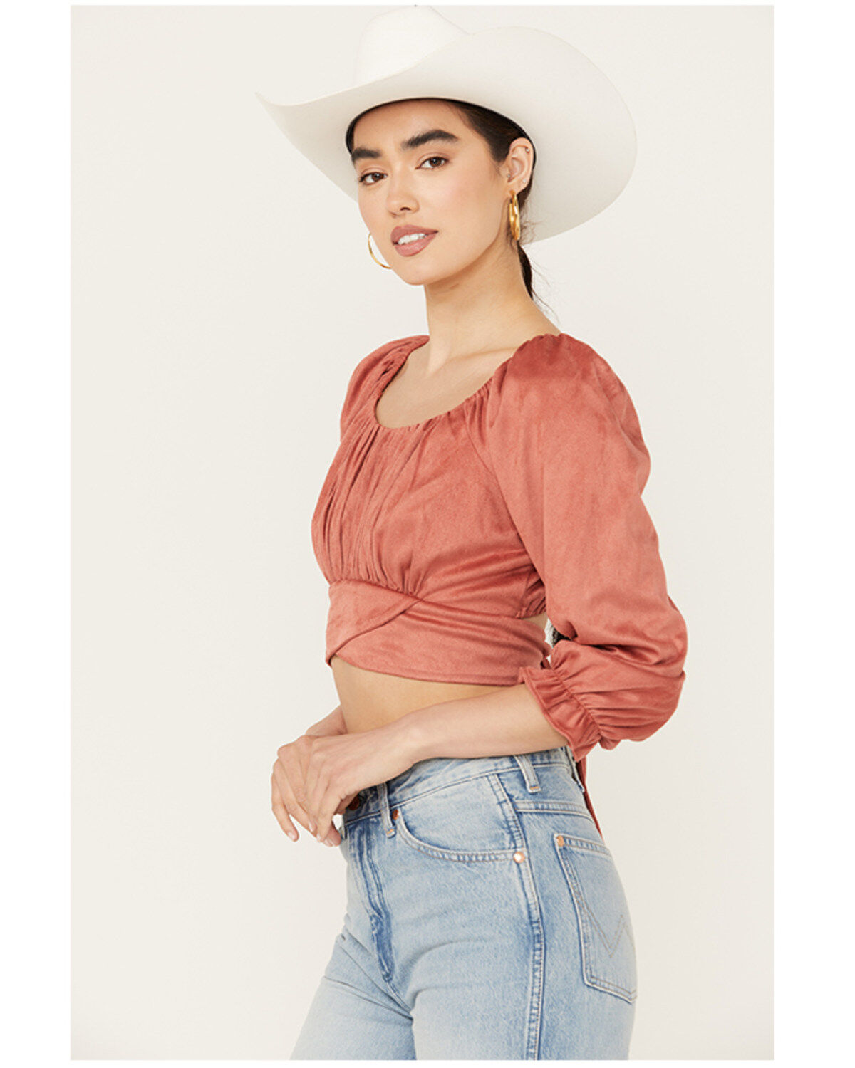 Beyond The Radar Women's Faux Suede Tie Back Top