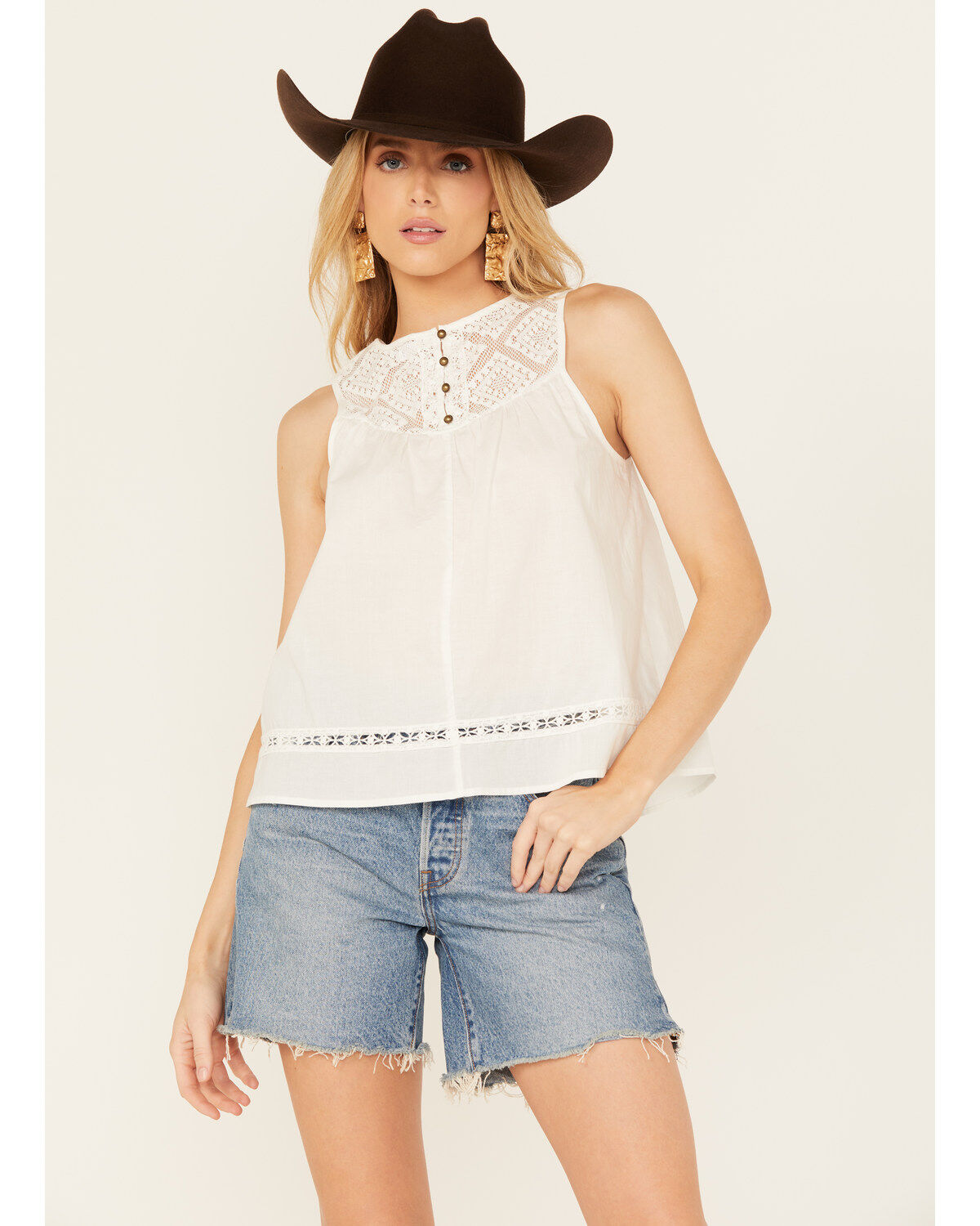 Molly Bracken Women's Crochet Sleeveless Peasant Top