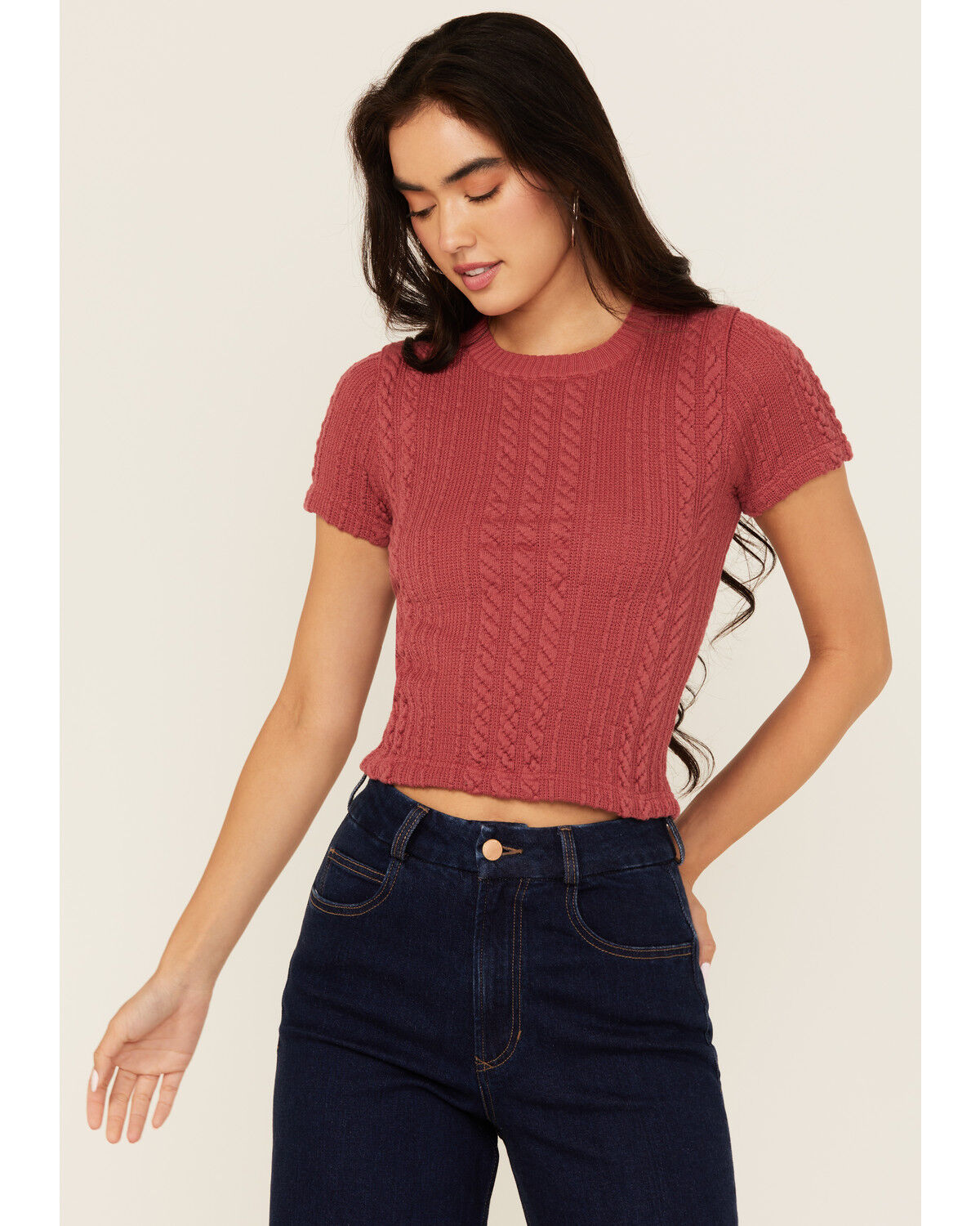 Evergreen Women's Cable Rib Short Sleeve Top