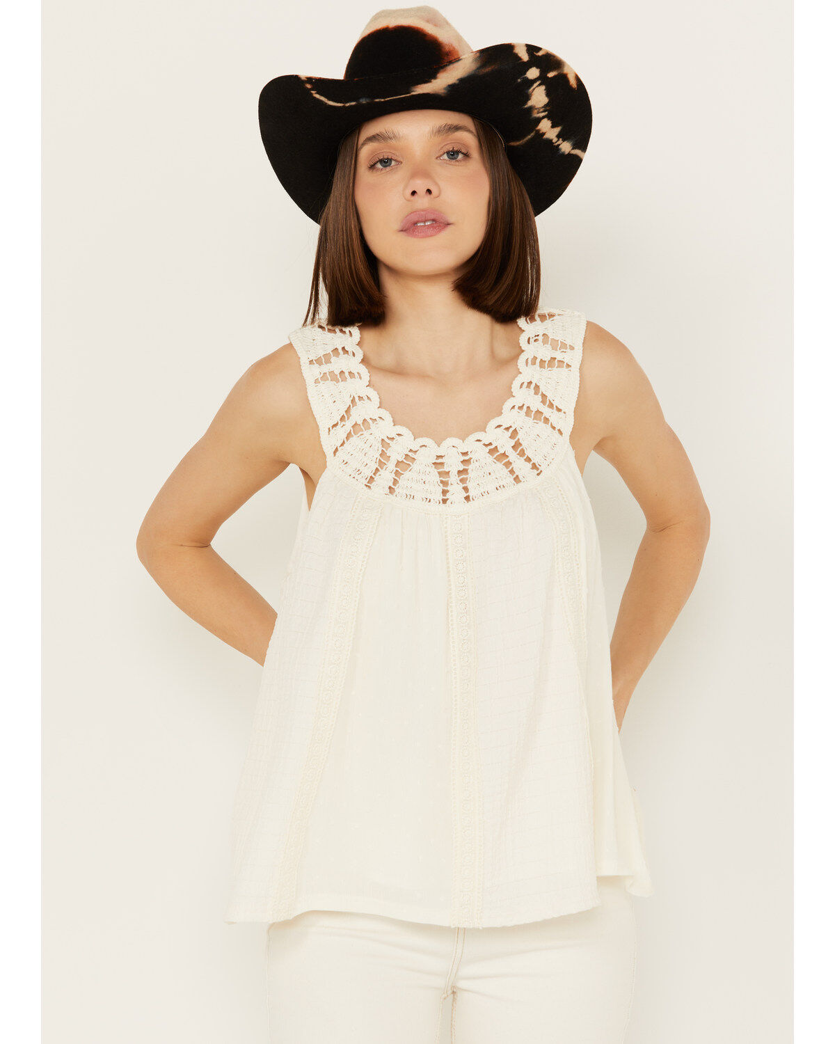 Miss Me Women's Crochet Neck Sleeveless Peasant Top