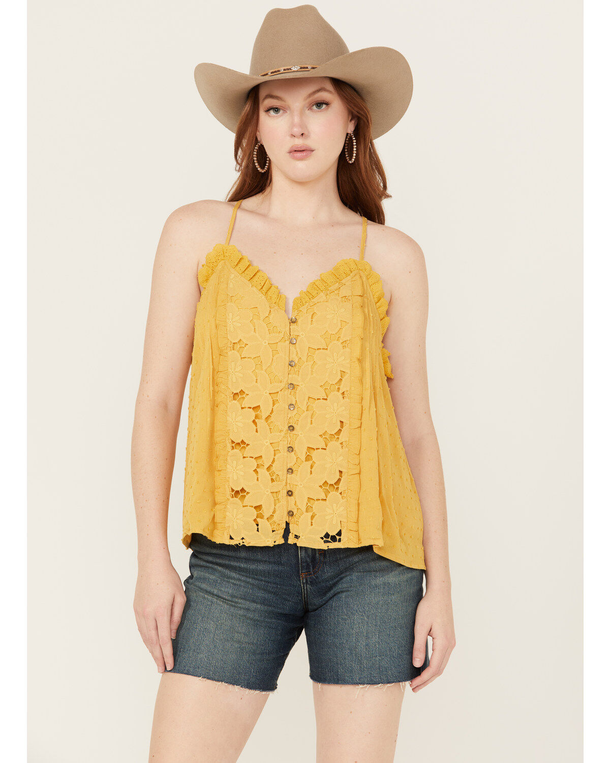 Cleo + Wolf Women's Cat Lace Trim Tank Top