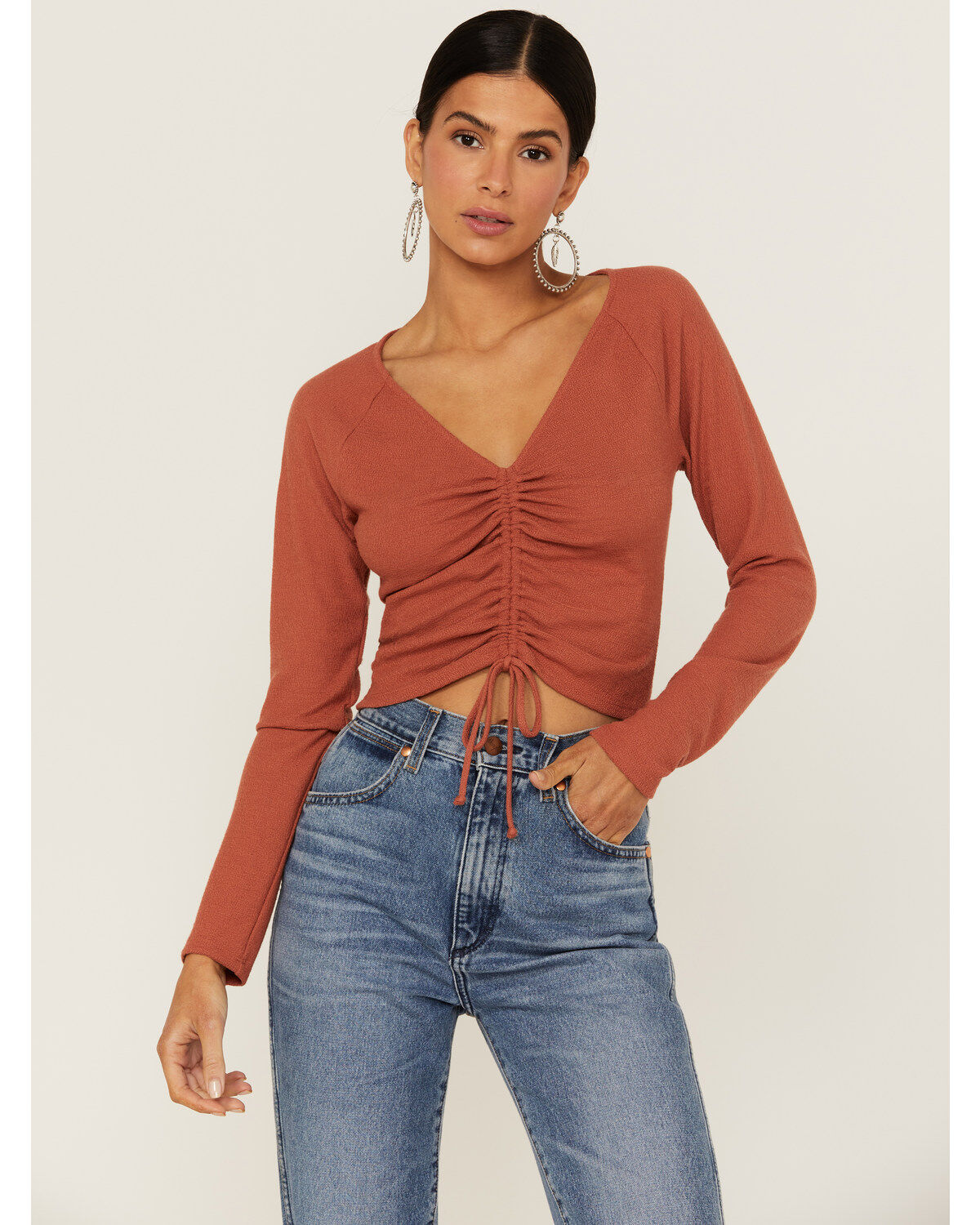 Lush Women's Brick Long Sleeve Cinch Front Knit Top