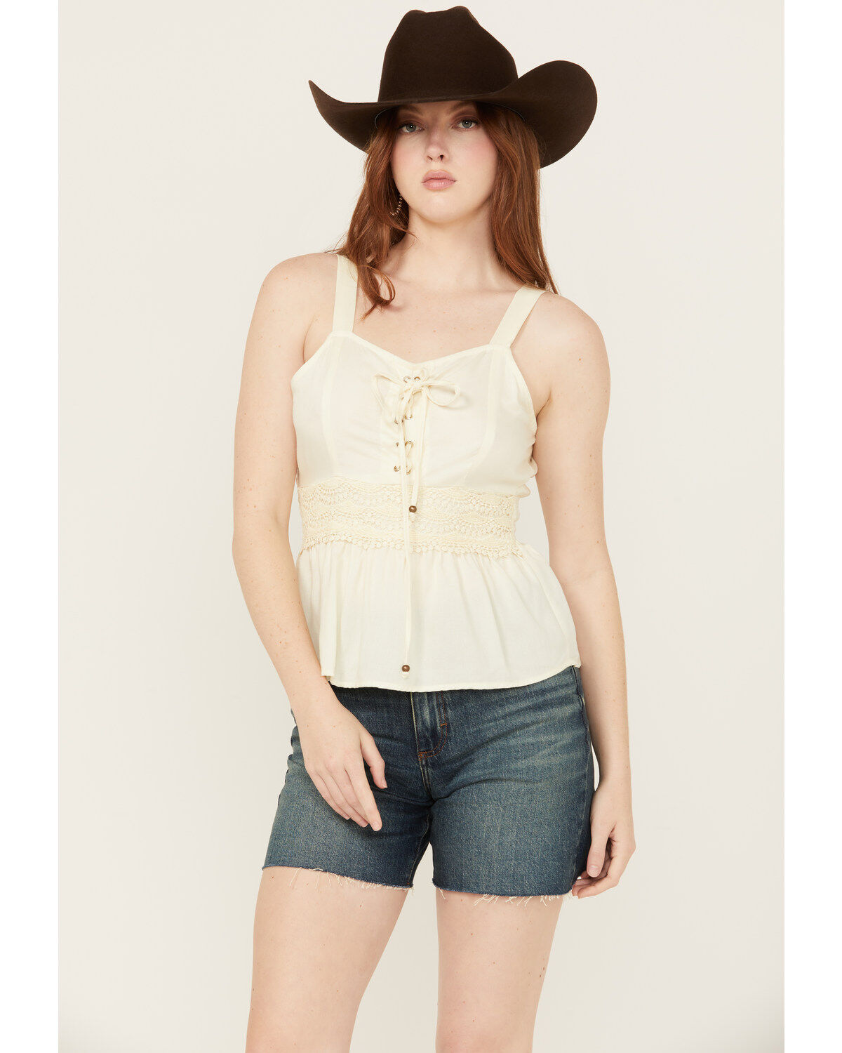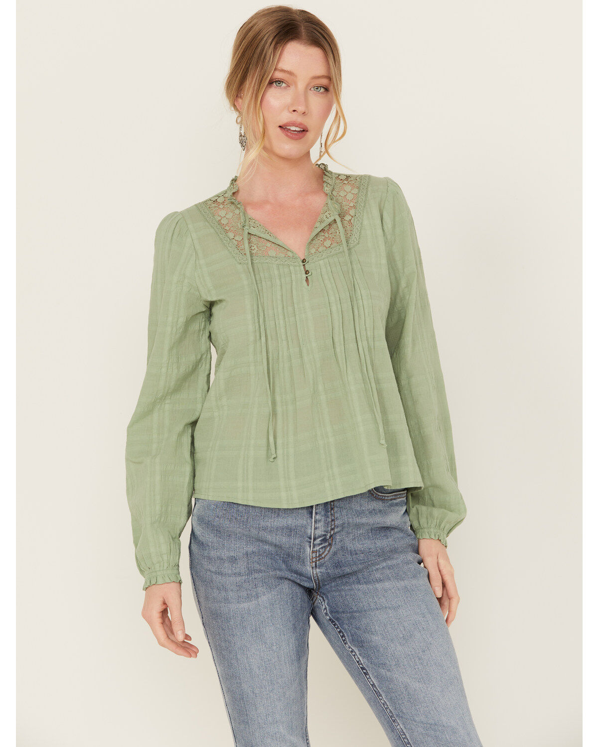 Jolt Women's Lace Trim Long Sleeve Peasant Top