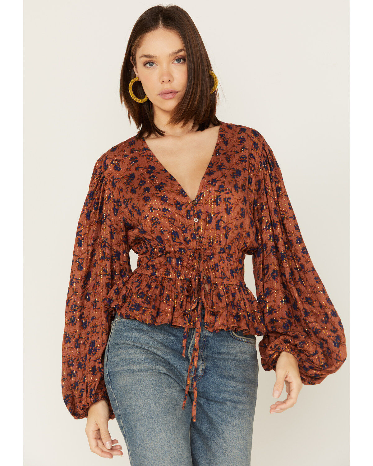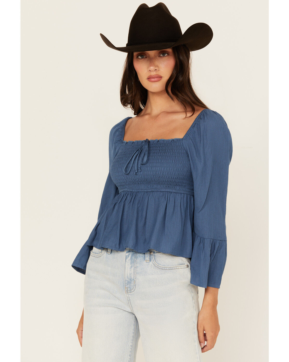 Ash & Violet Women's Smocked Front Bell Sleeve Top