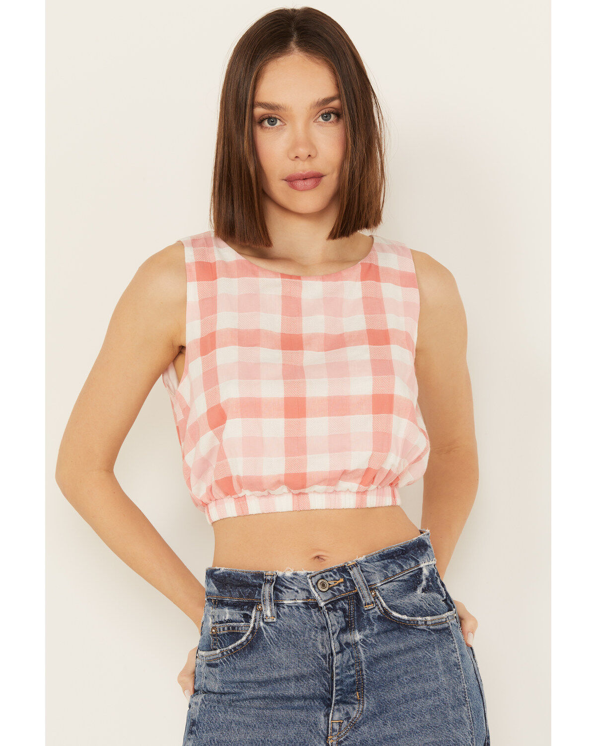 By Together Women's Gingham Print Cropped Sleeveless Top