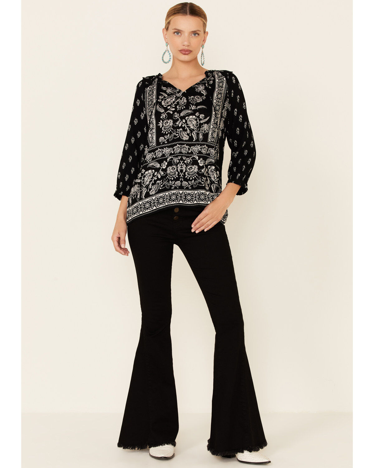 Bila Women's Delaney Two-Tone Print 3/4 Sleeve Peasant Top