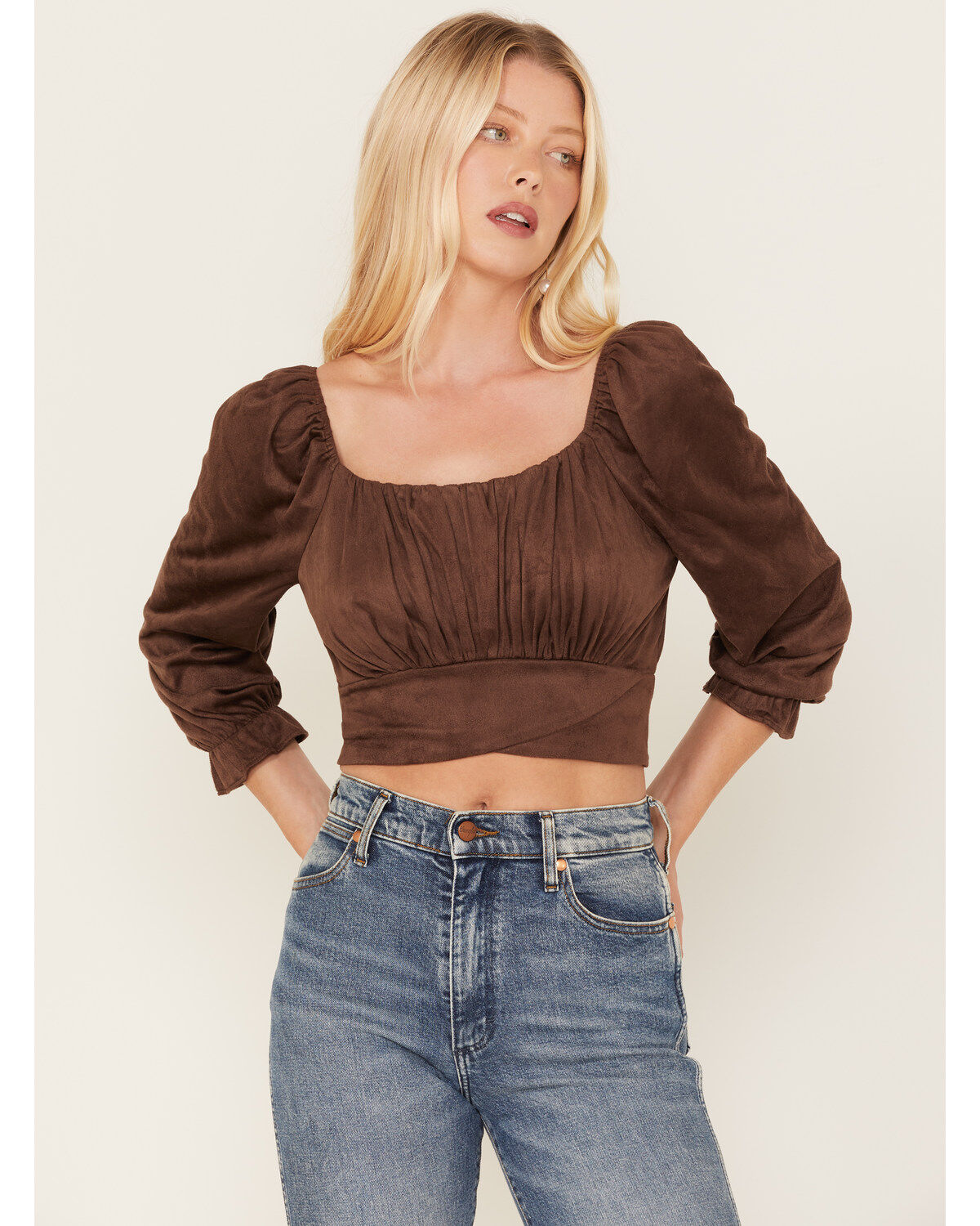 Beyond The Radar Women's Faux Suede Tie Back Crop Top