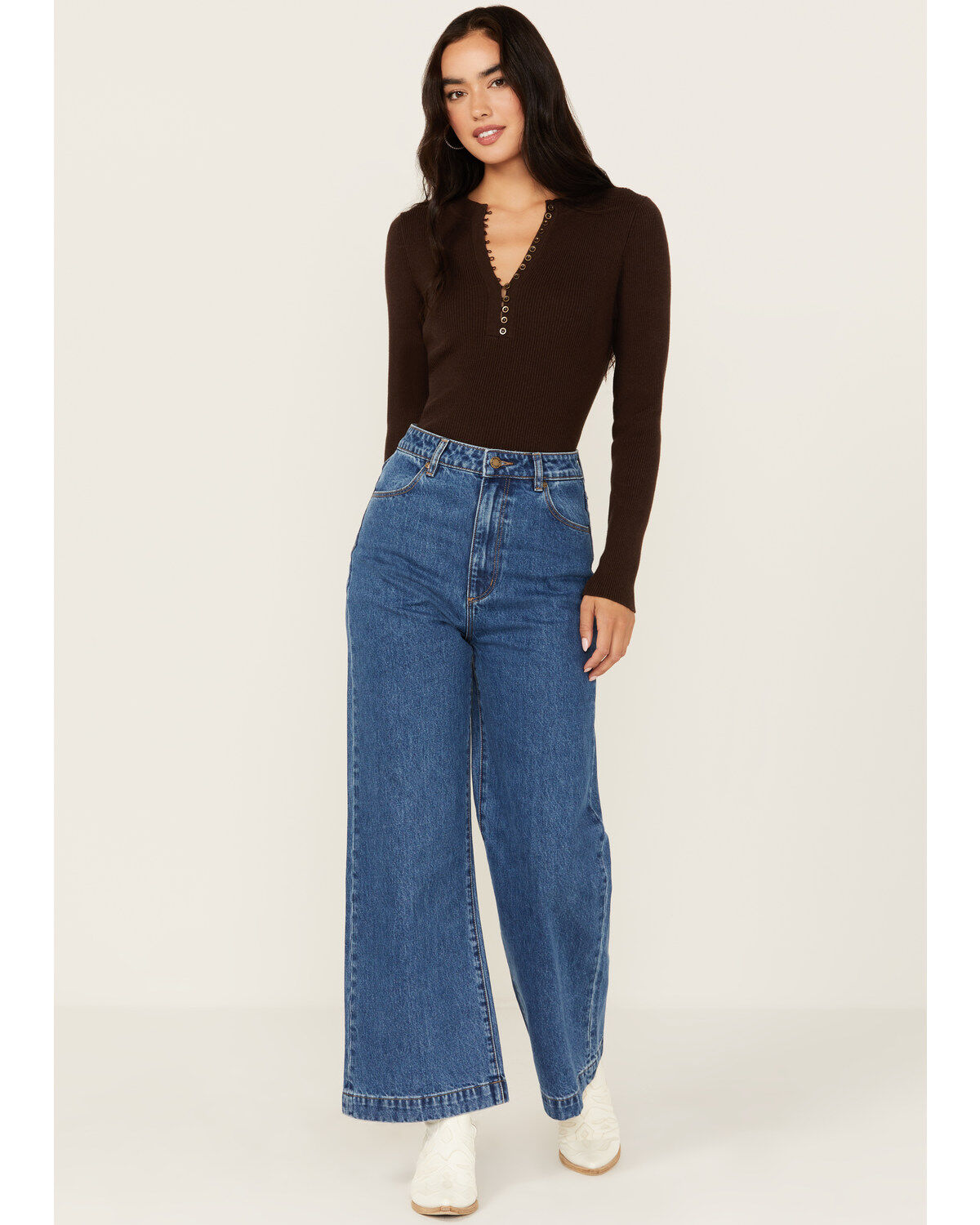 Rolla's Women's Medium Wash High Rise Wide Leg Sailor Jeans