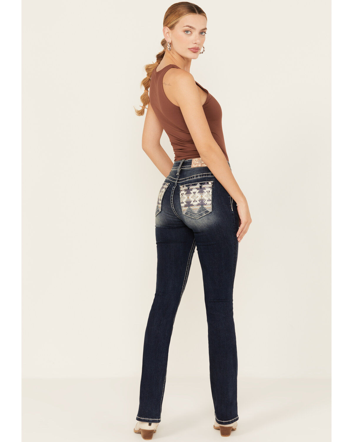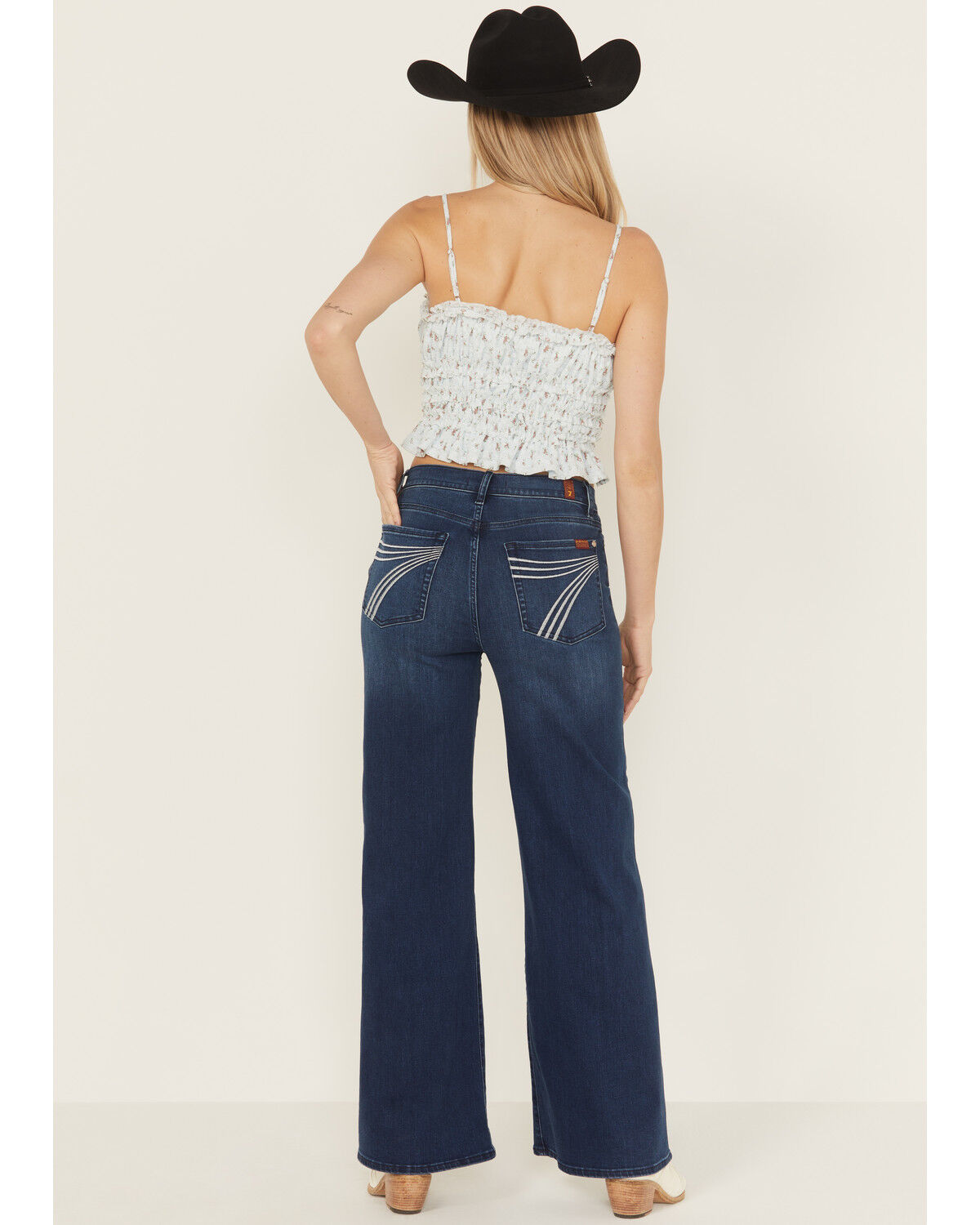 Stetson Women's 214 Medium Wash Pieced Pocket Trouser Leg Jean