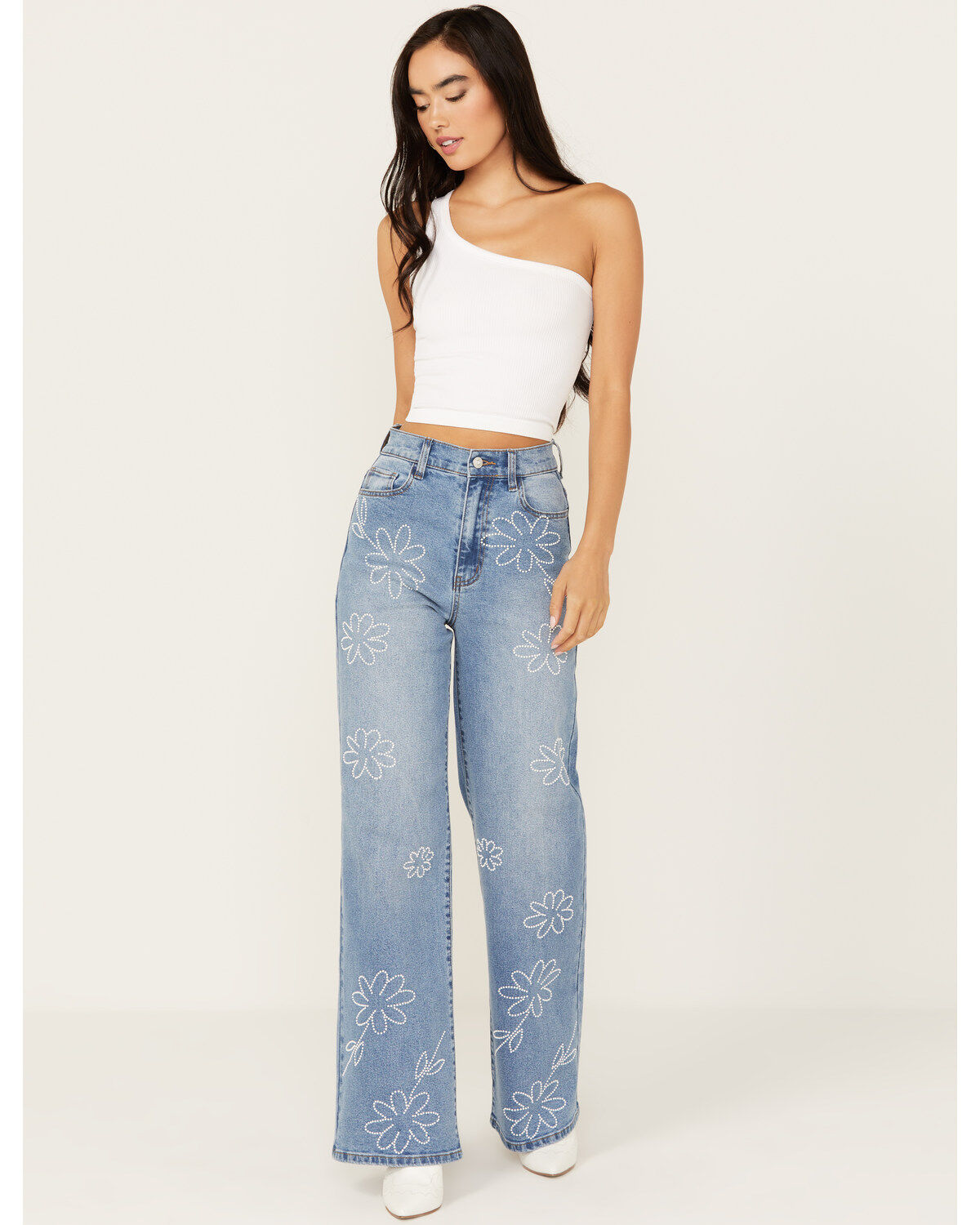 Shyanne Women's Dark Wash Mid Rise Embroidered Flare Jeans