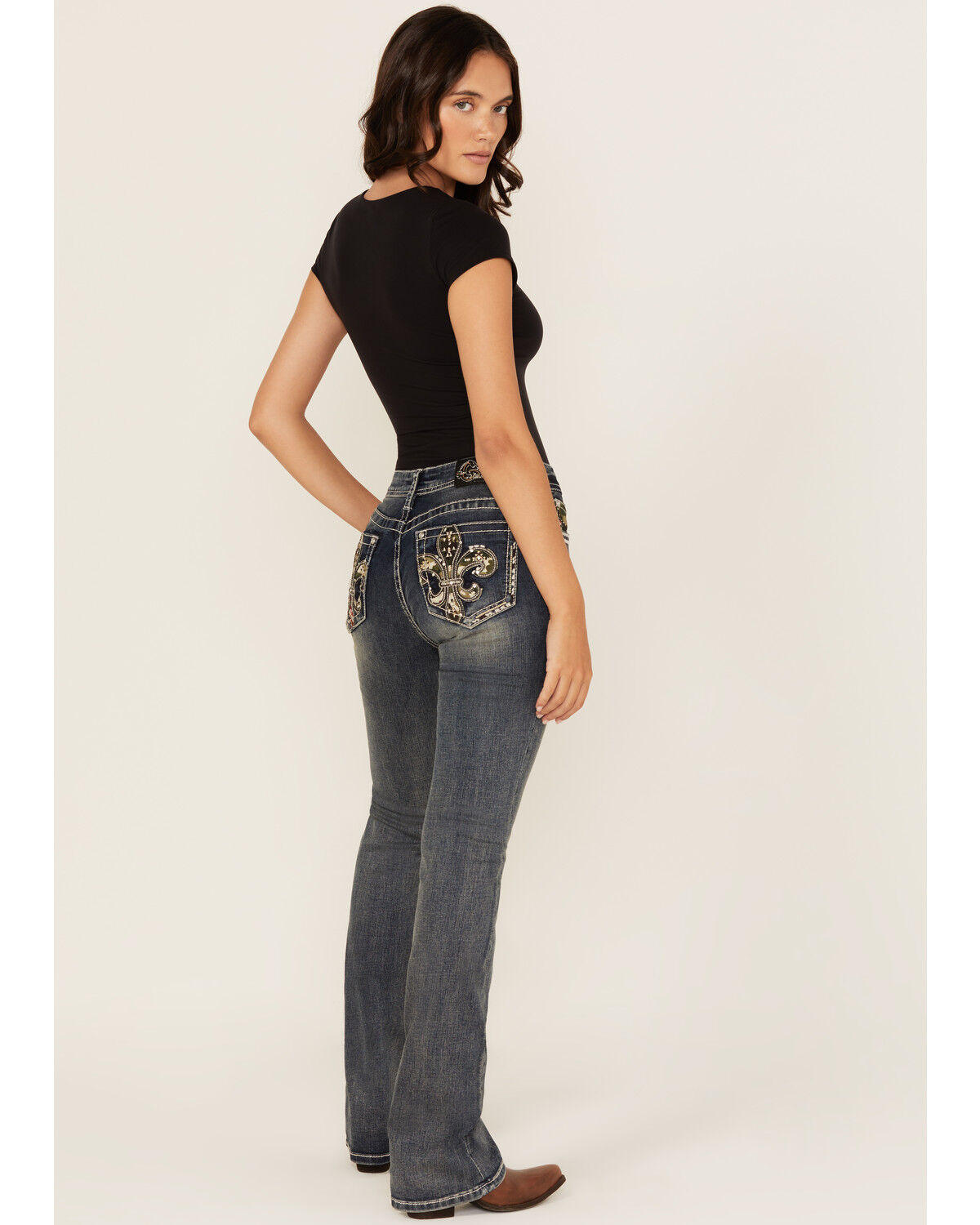 Miss Me Women's Medium Wash Mid Rise Bootcut Stretch Denim Jeans
