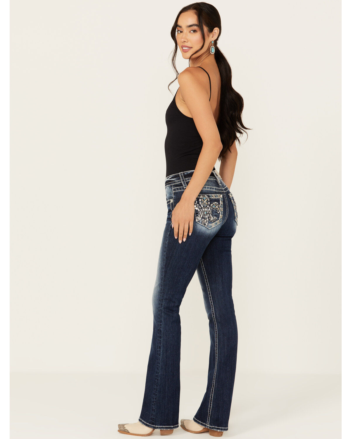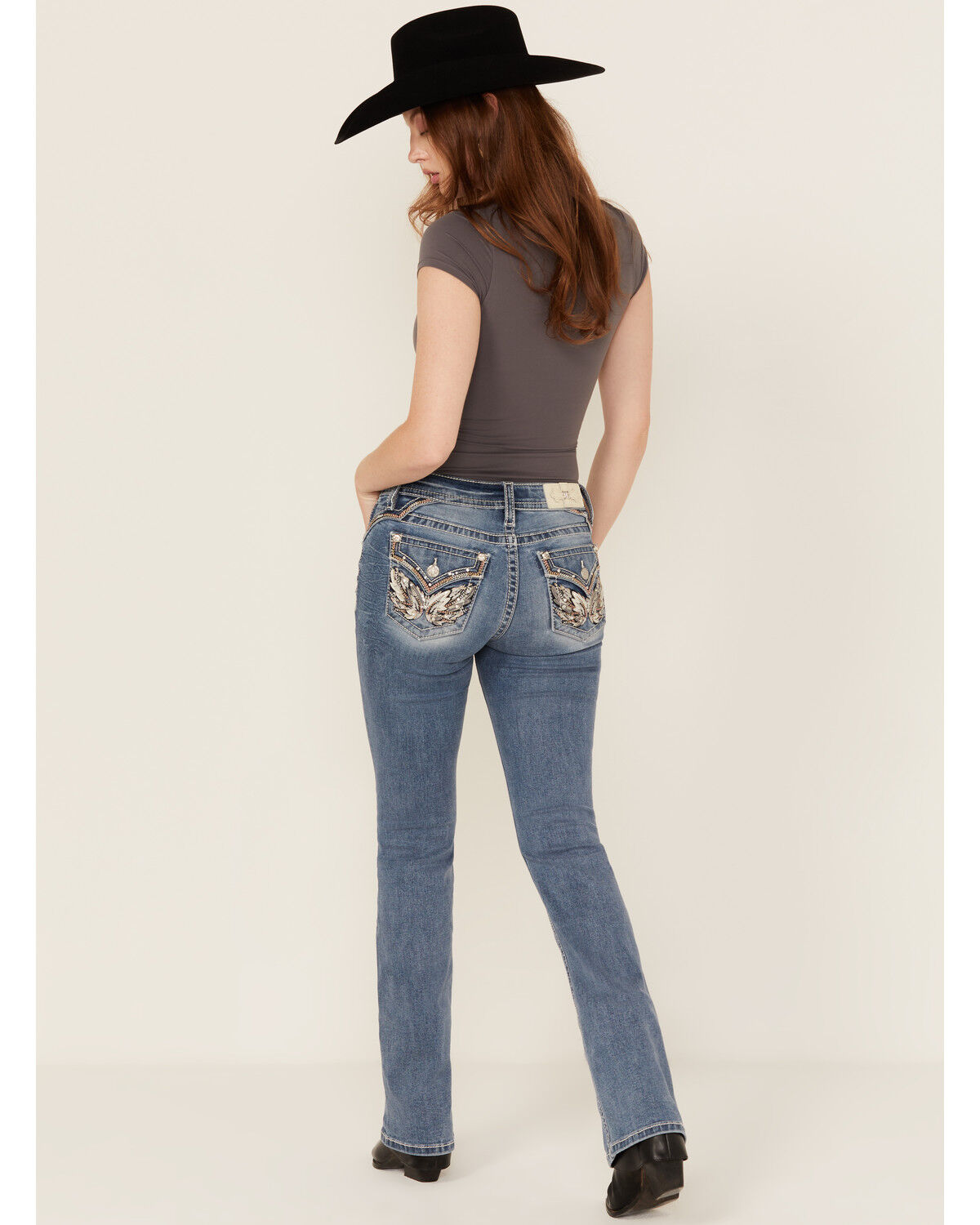 Miss Me Women's Medium Wash Wing Embroidered Bootcut Stretch Jeans