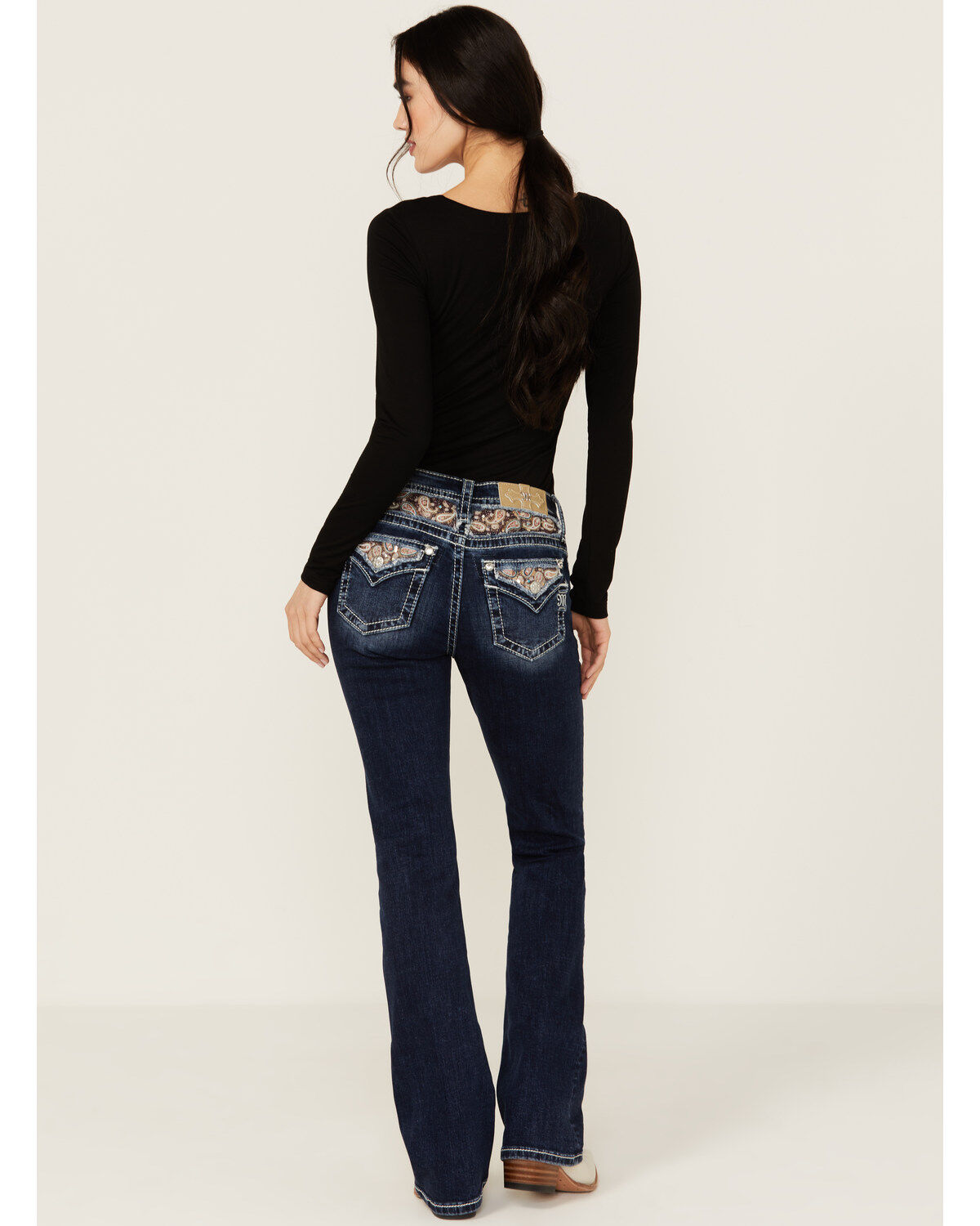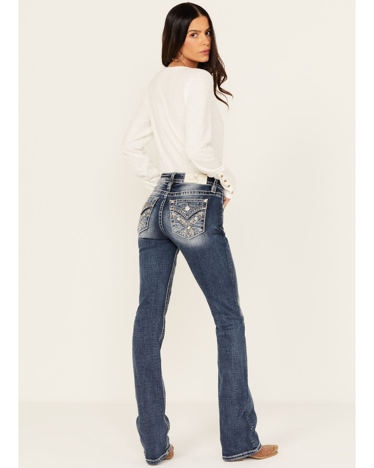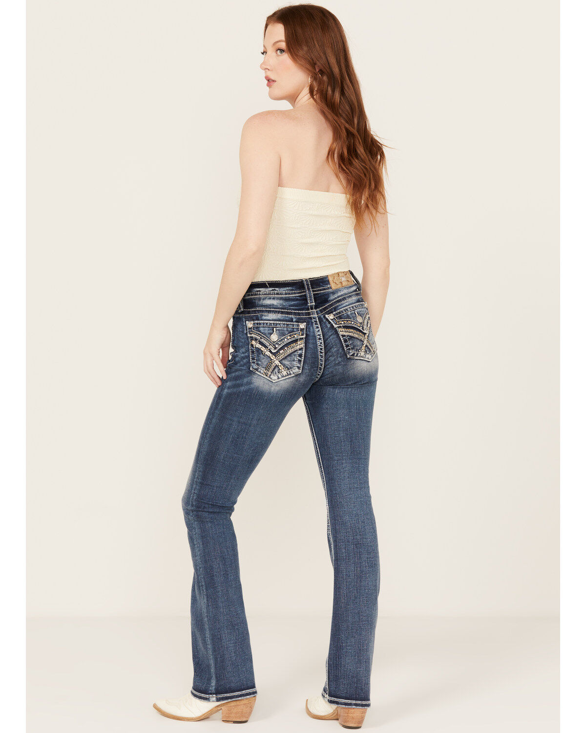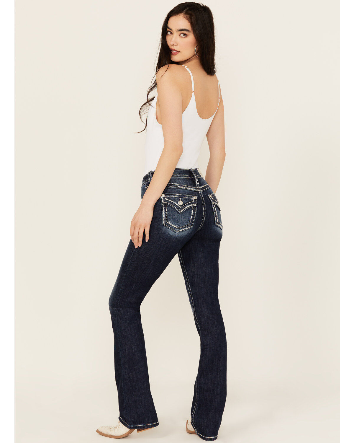 Miss Me Women's Dark Wash Braided Pocket Bootcut Stretch Denim Jeans