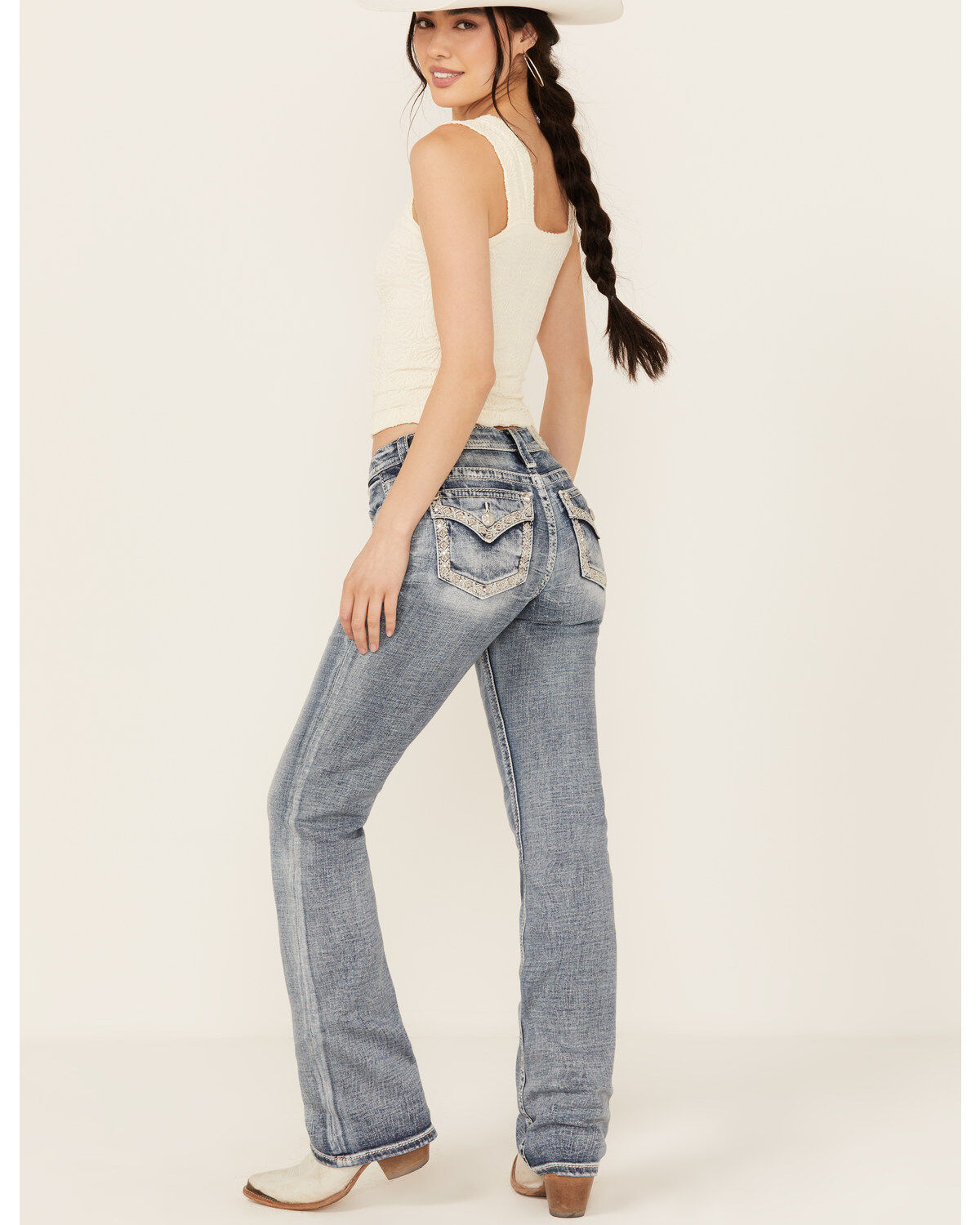 Miss Me Women's Medium Wash Mid Rise Bootcut Stretch Denim Jeans