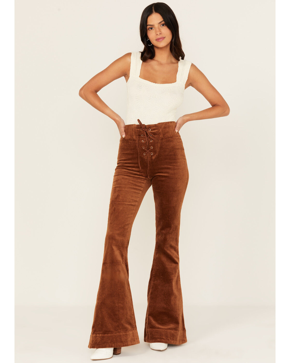 Show Me Your Mumu Women's Cam High Rise Corduroy Bell Bottom Pants