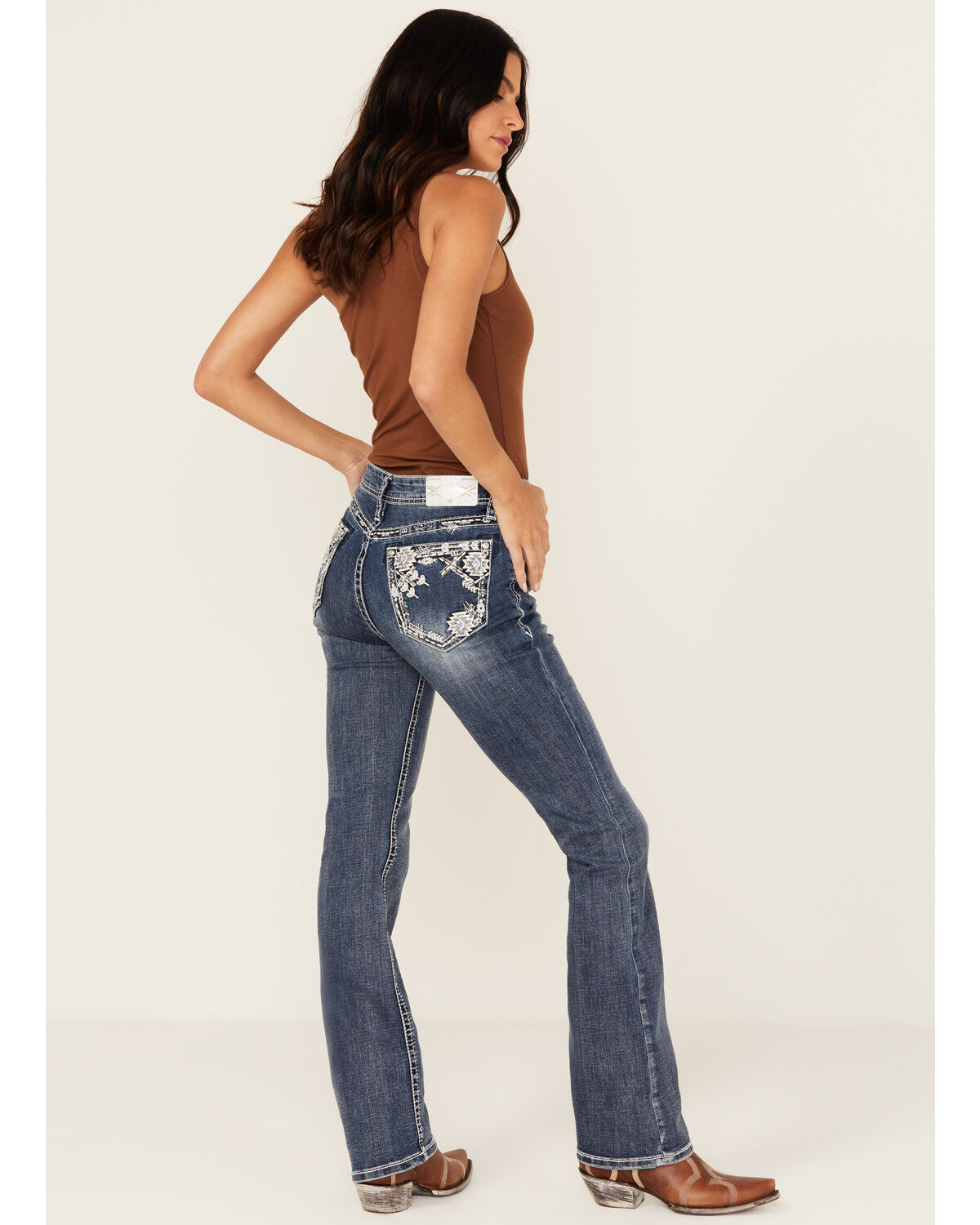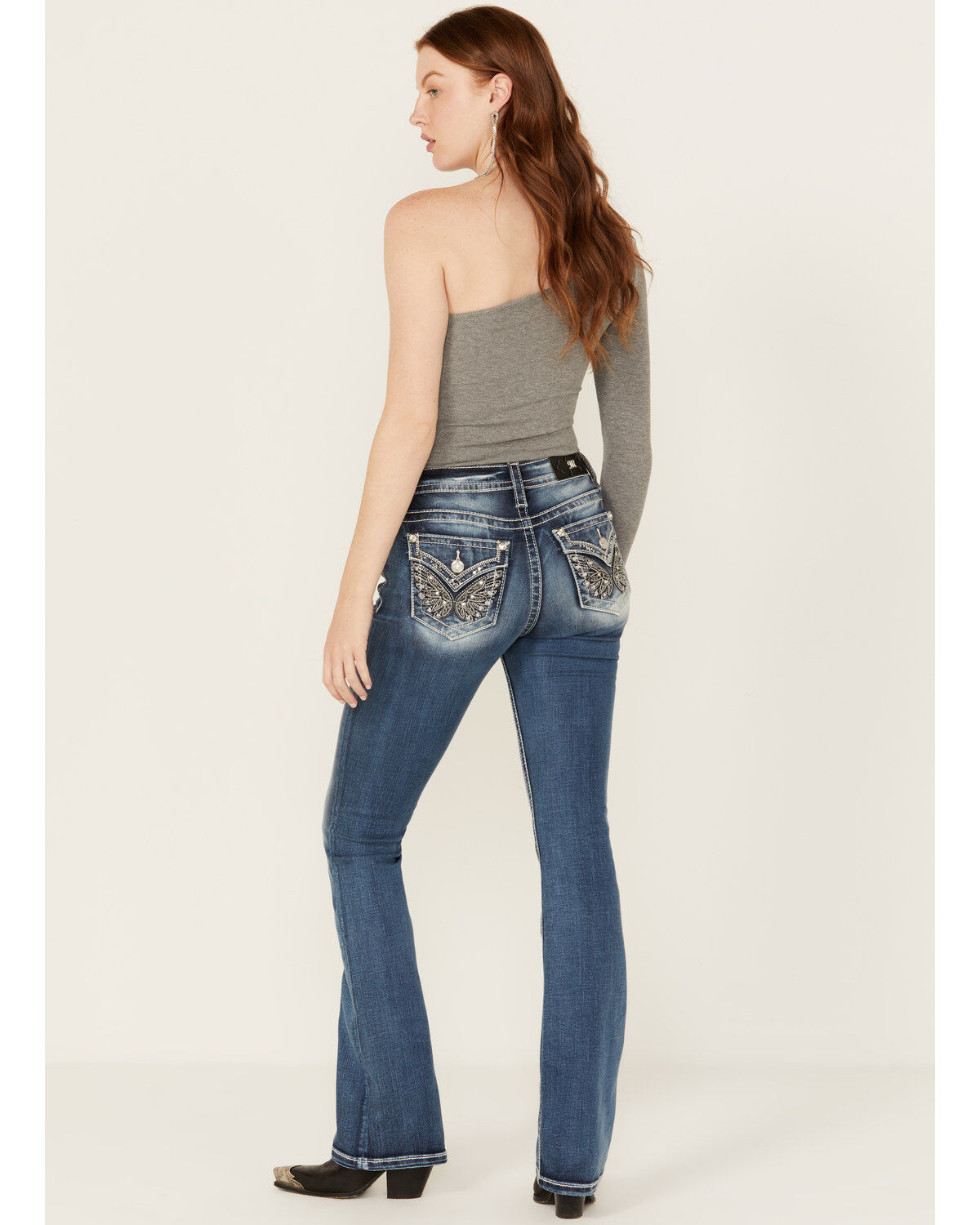 Miss Me Women's Medium Wash Wing Embroidered Bootcut Stretch Jeans