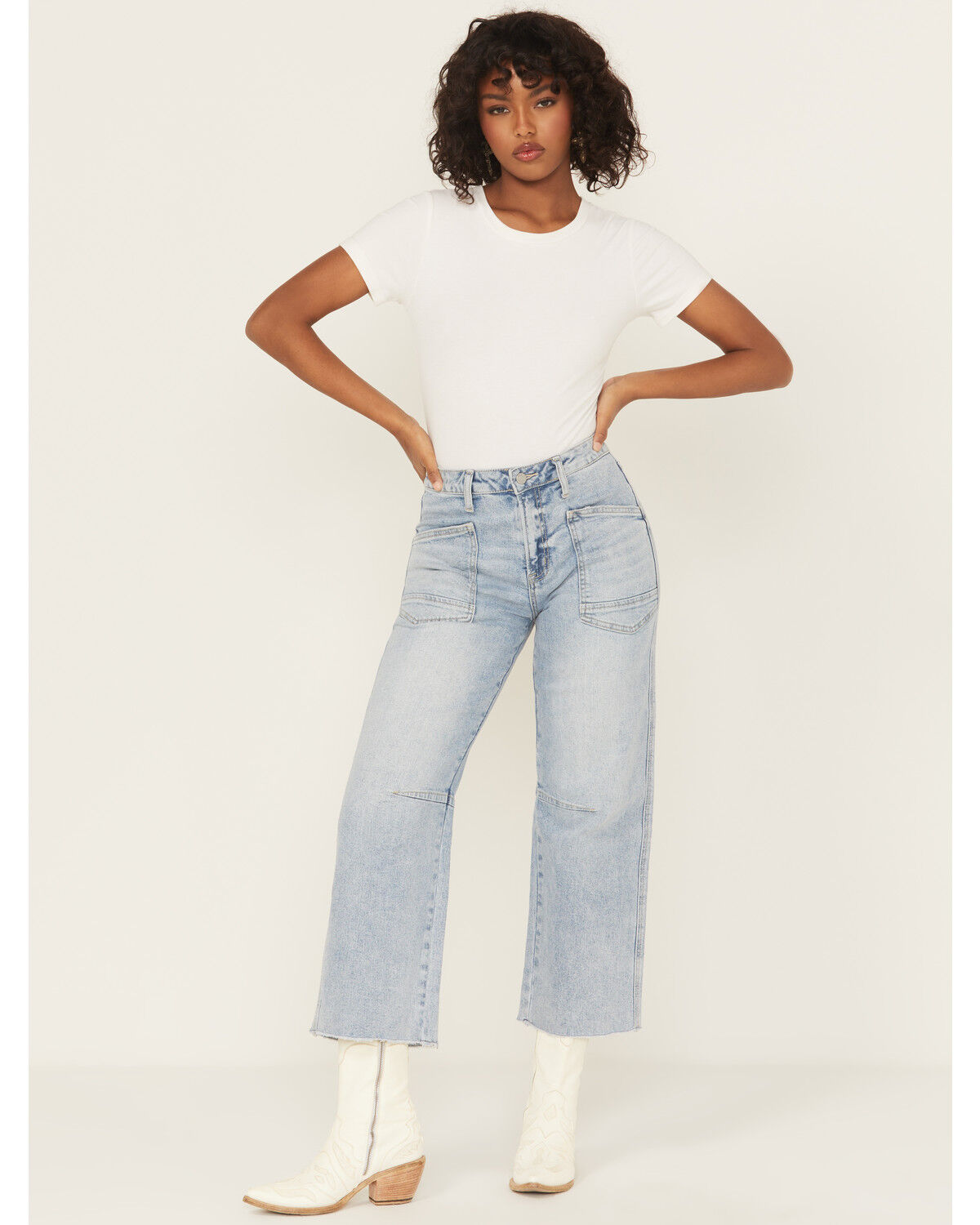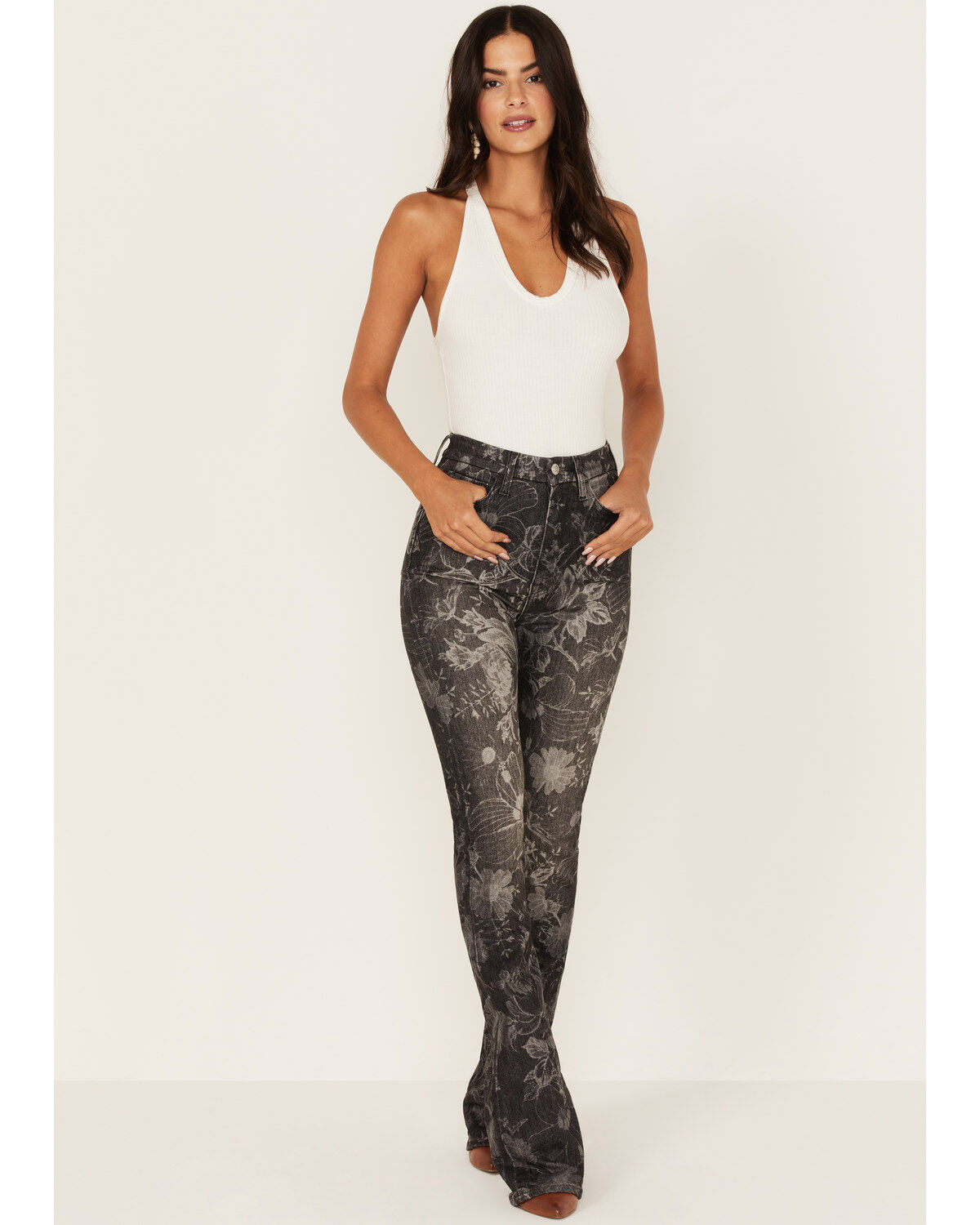 Cleo + Wolf Women's High Rise Plaid Print Flare Jeans