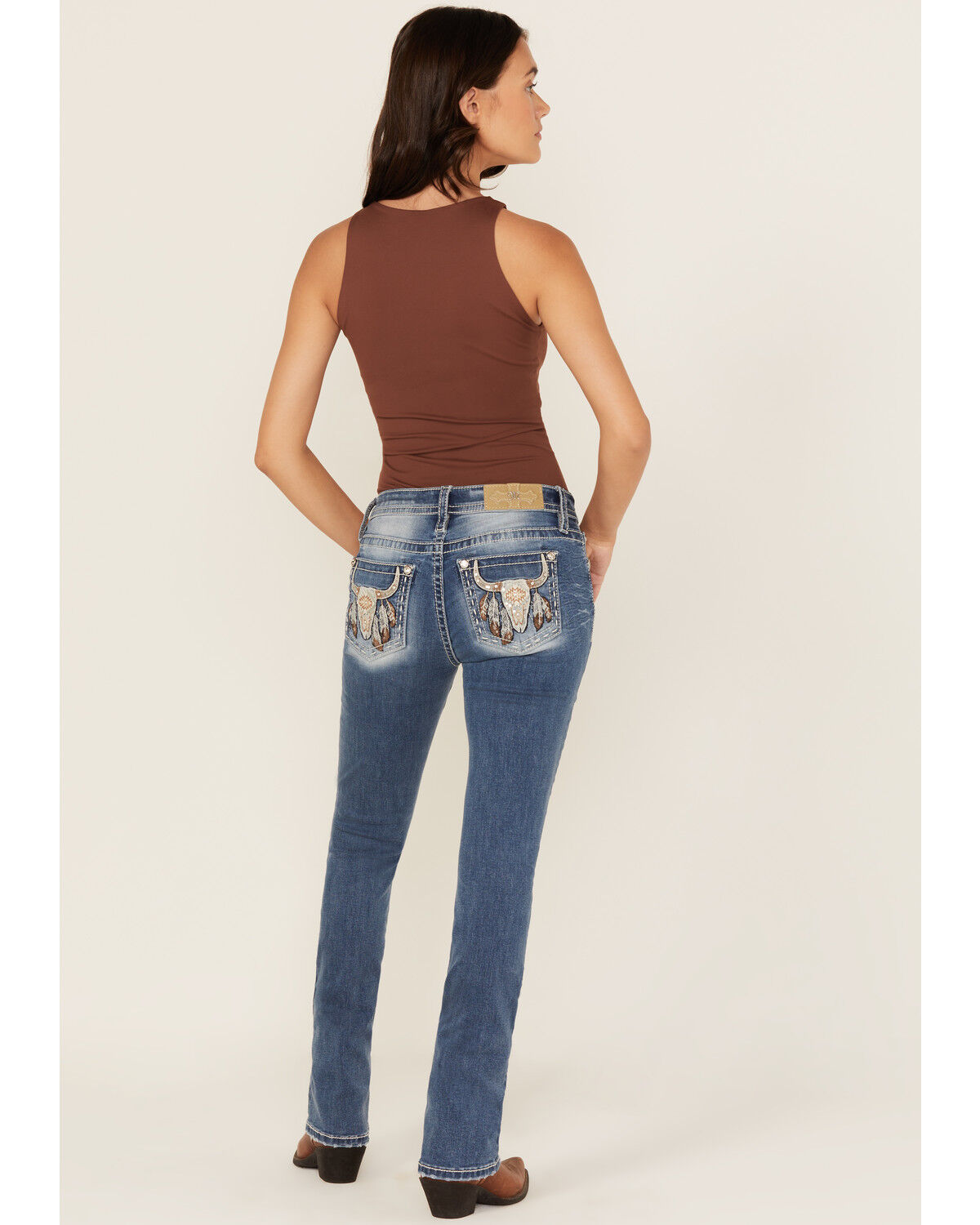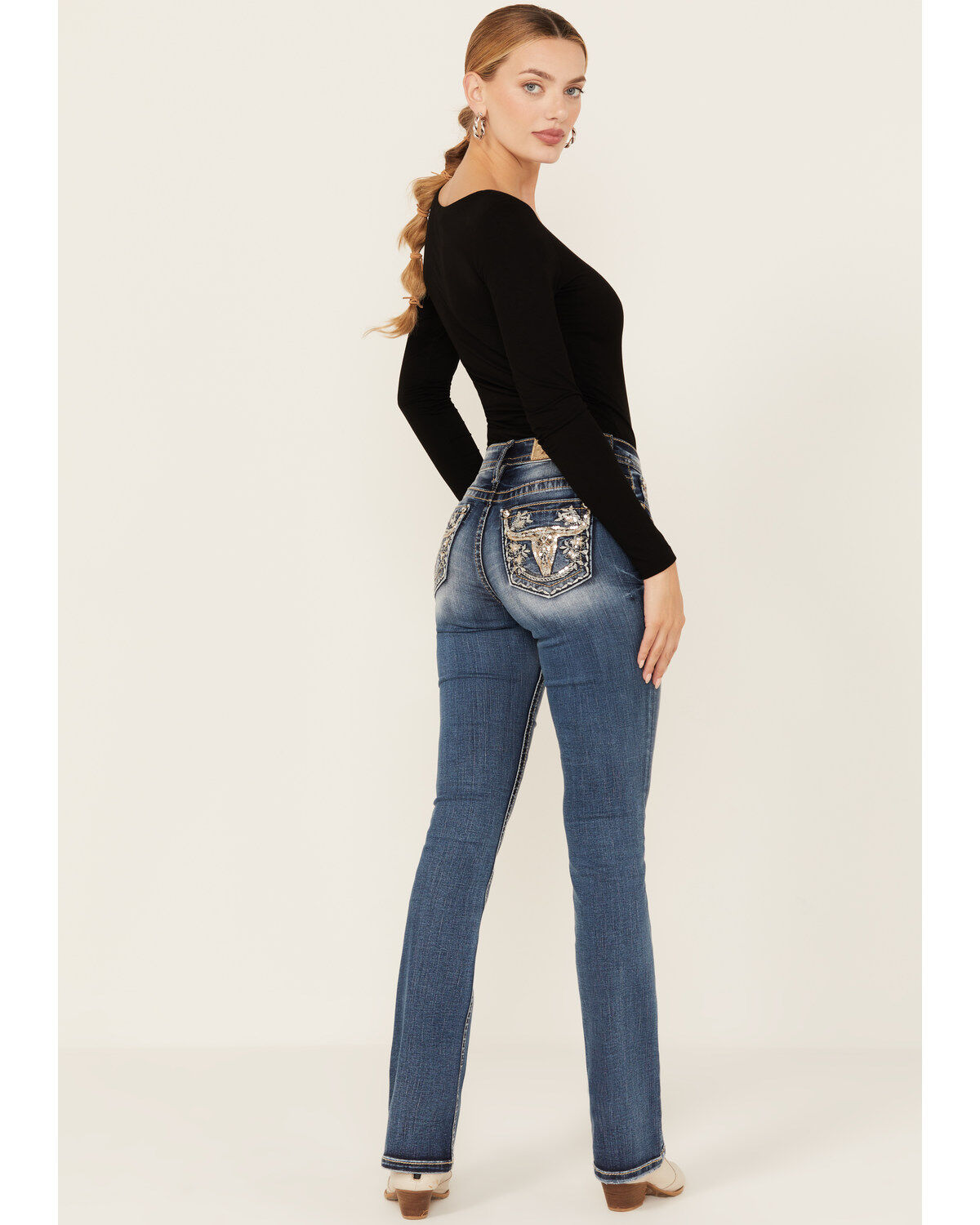 Miss Me Women's Mid Rise Wing Pocket Bootcut Stretch Denim Jeans