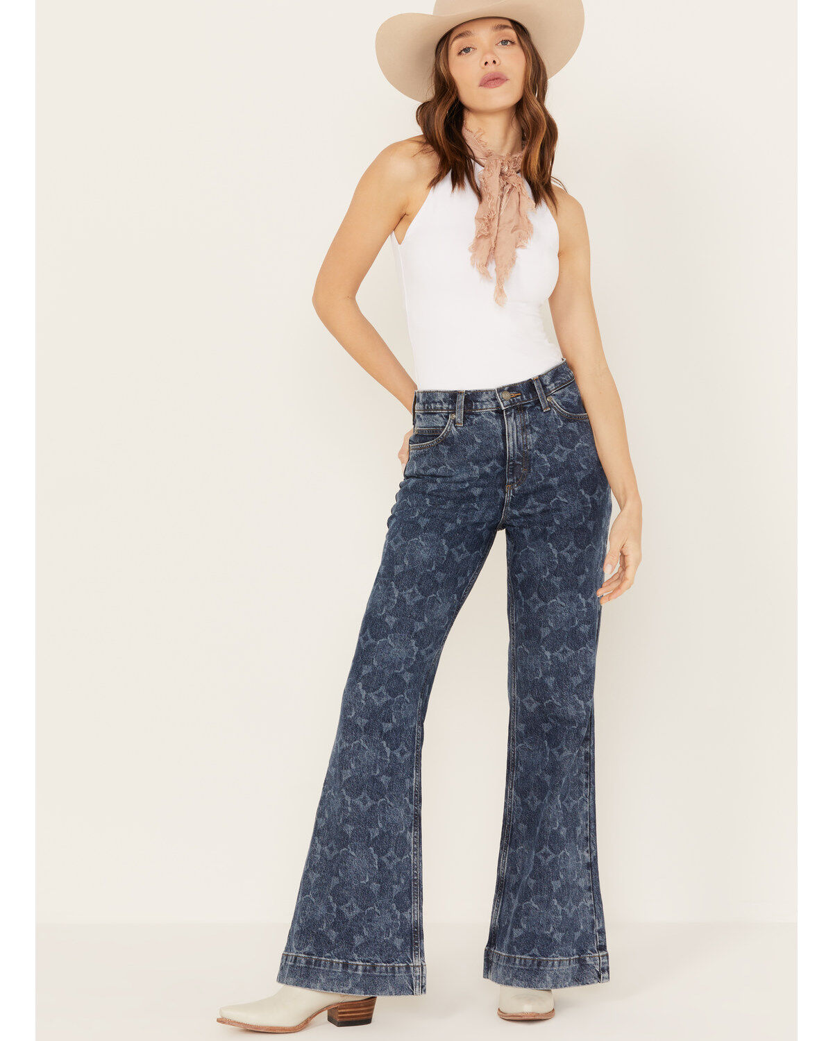Lee Women's Medium Wash Mid Rise Floral Flare Jeans