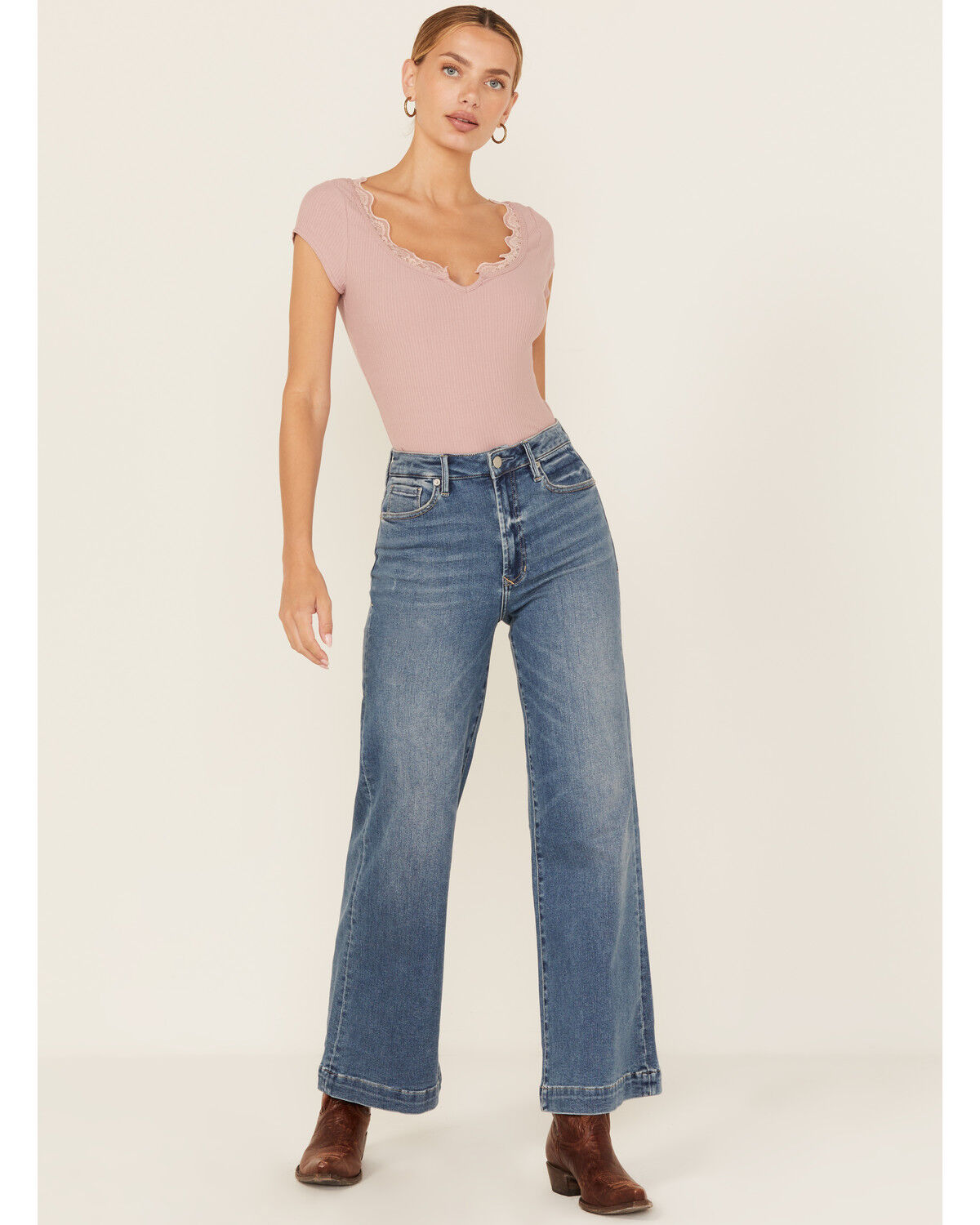 Dear John Women's Fiona Medium Wash Wide Leg Stretch Denim Jeans