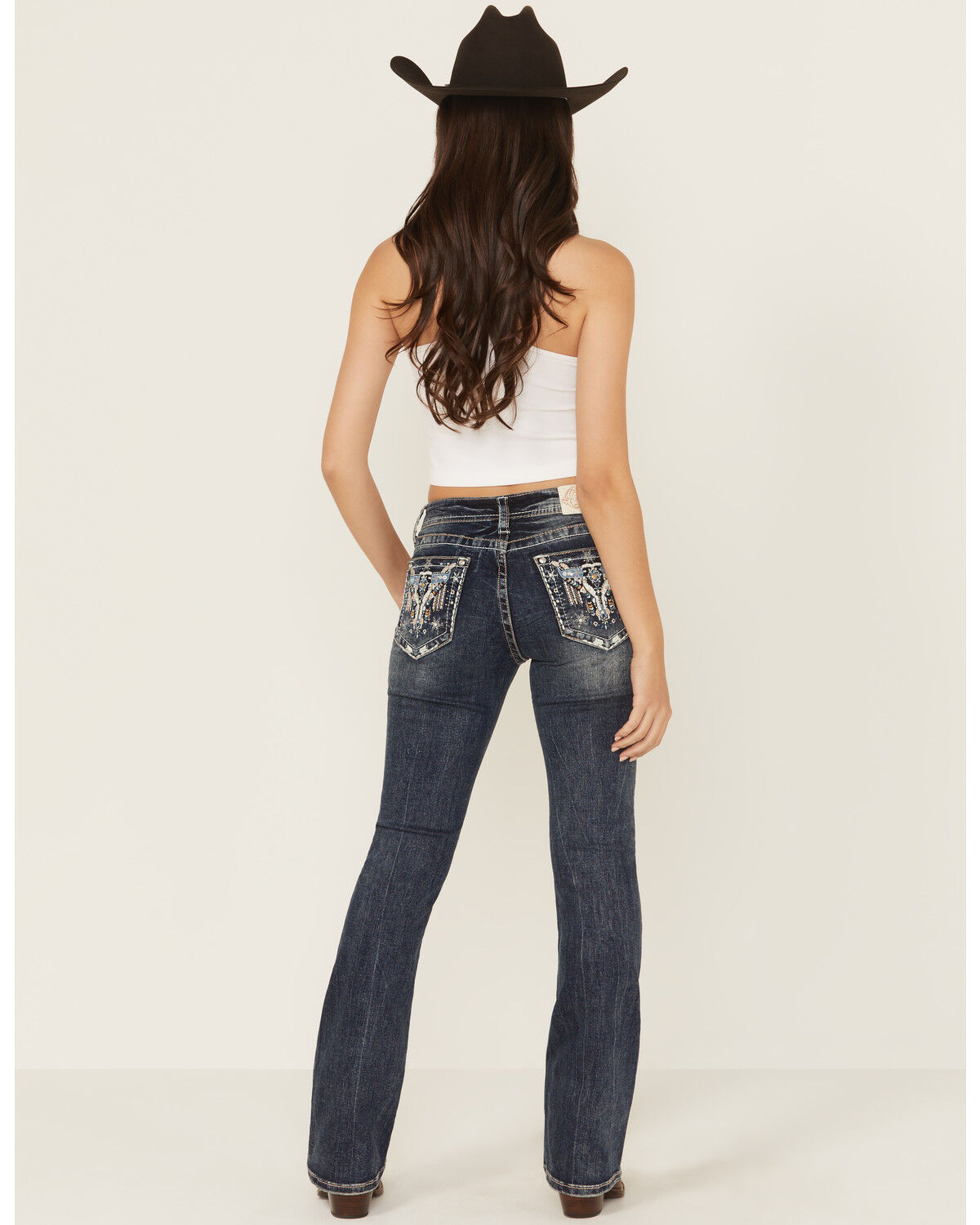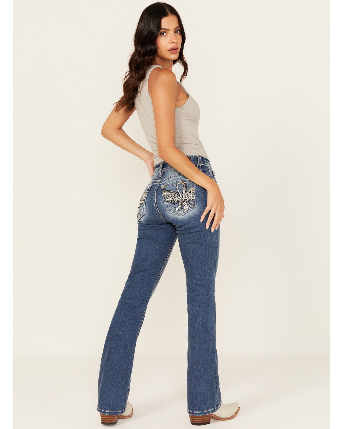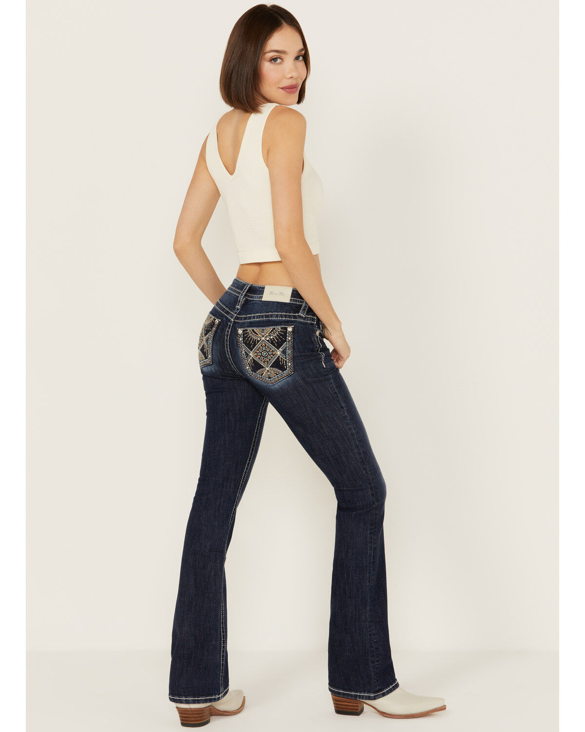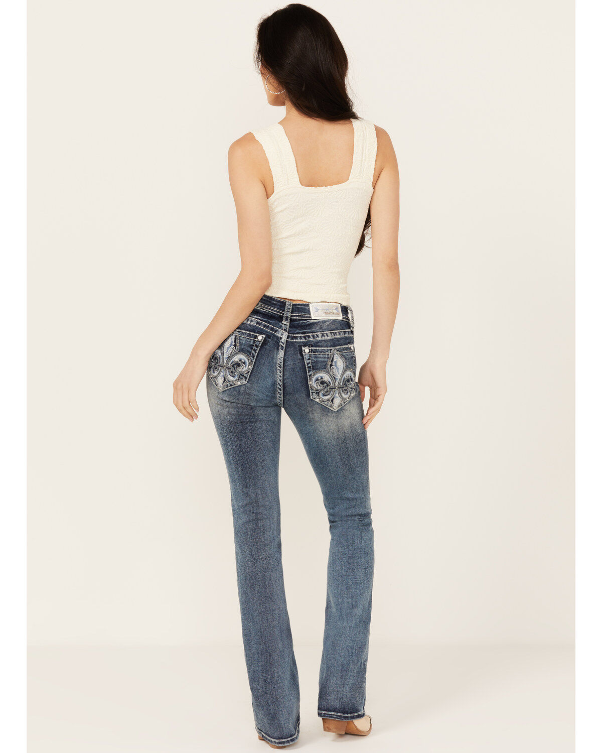 Miss Me Women's Dark Wash Mid Rise Bootcut Stretch Denim Jeans