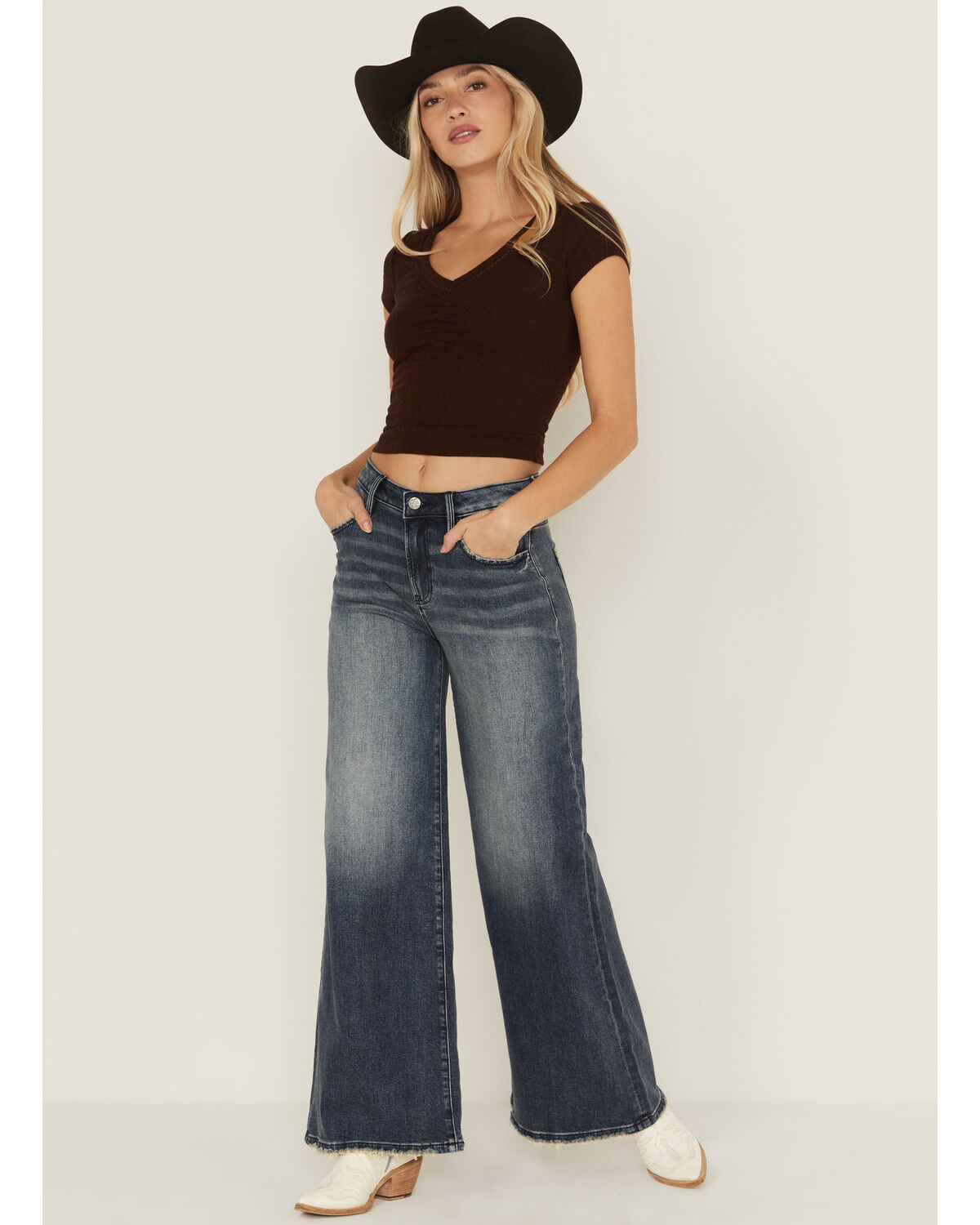 Cleo + Wolf Women's Exposed Button Fly Slim Straight Denim Jeans