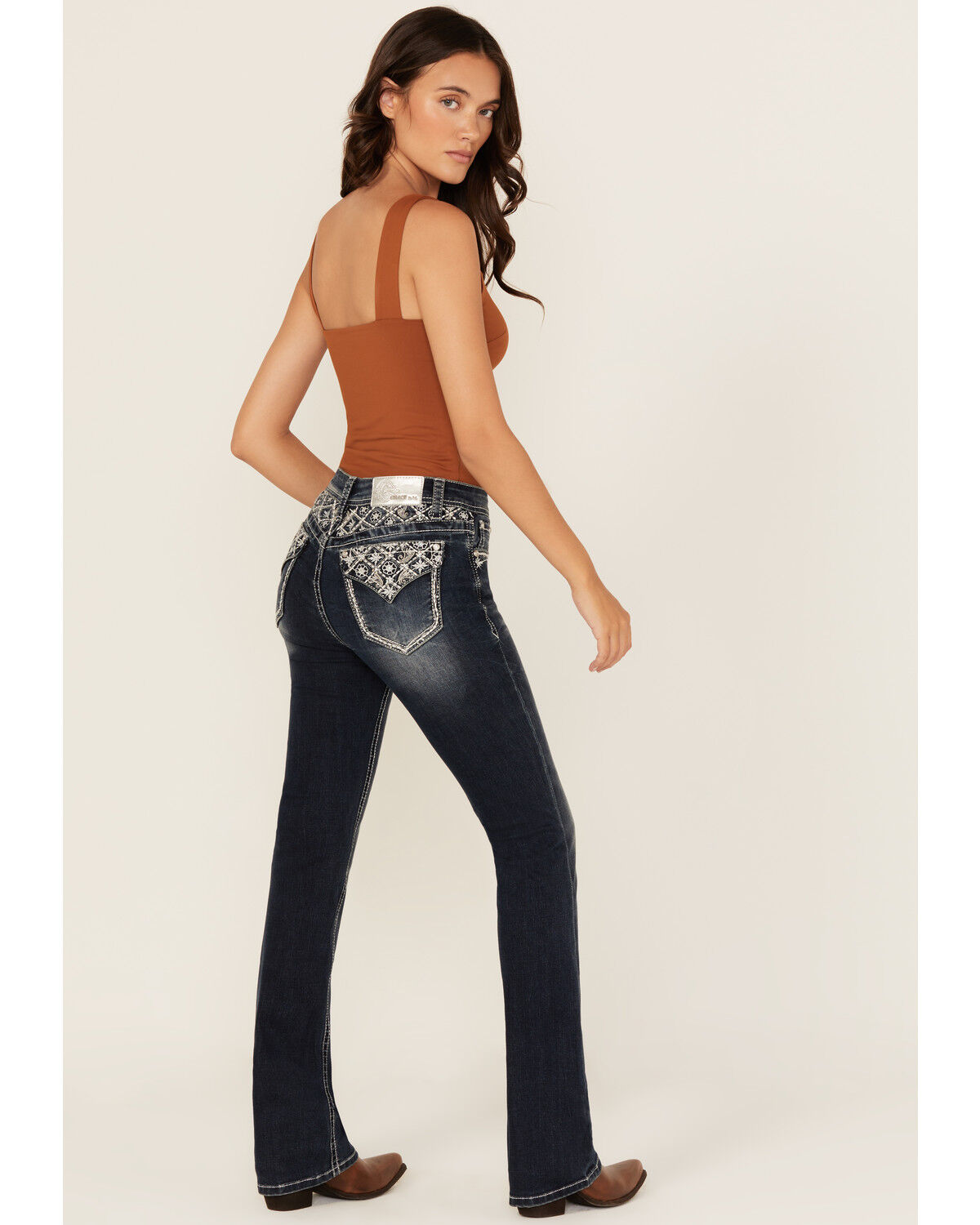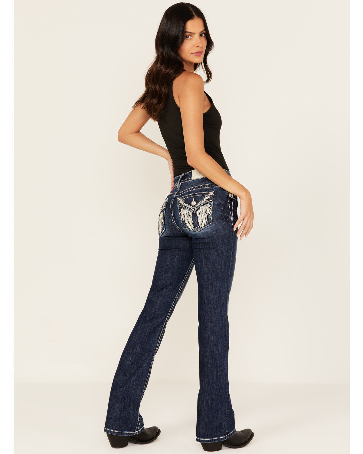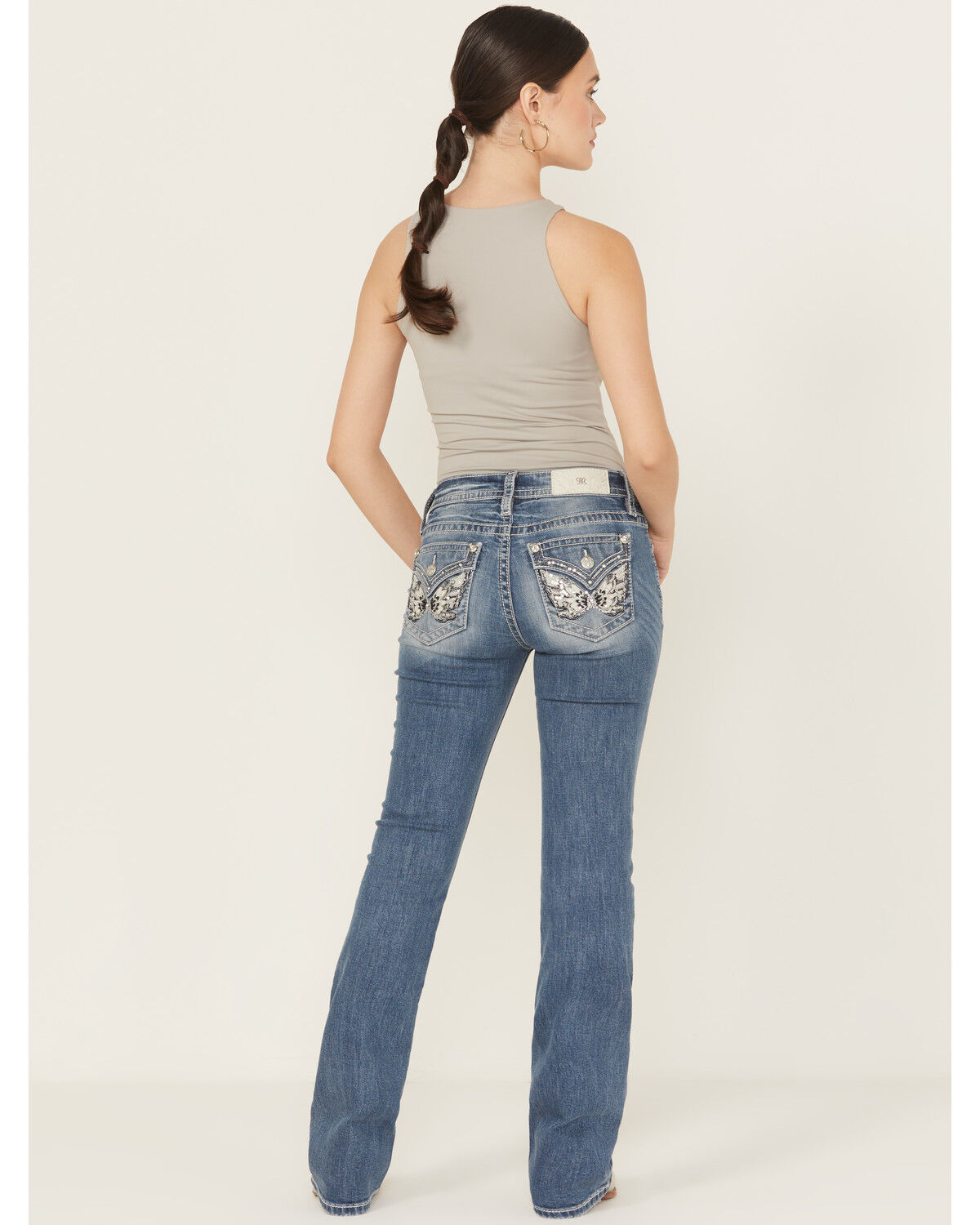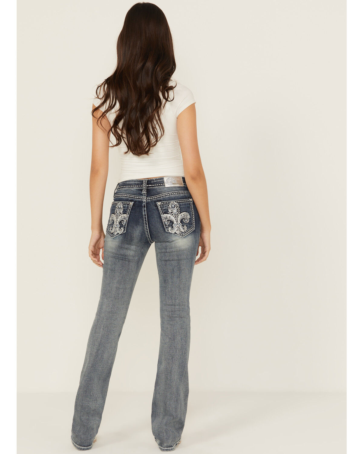 Miss Me Women's Medium Wash Embroidered Bootcut Stretch Denim Jeans