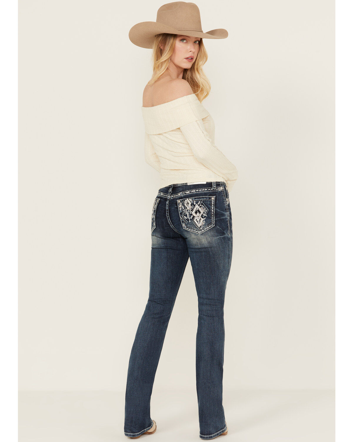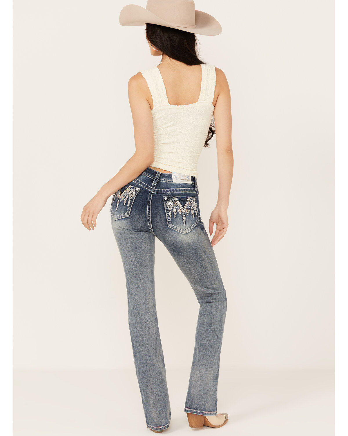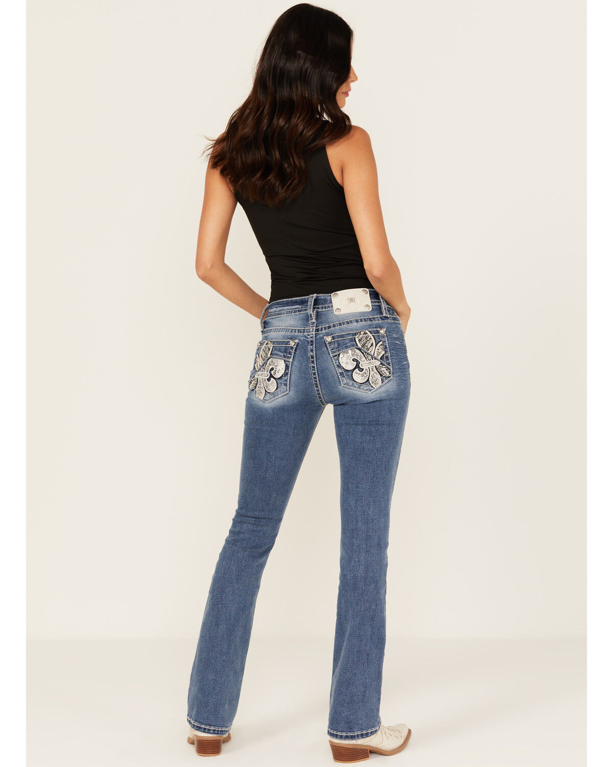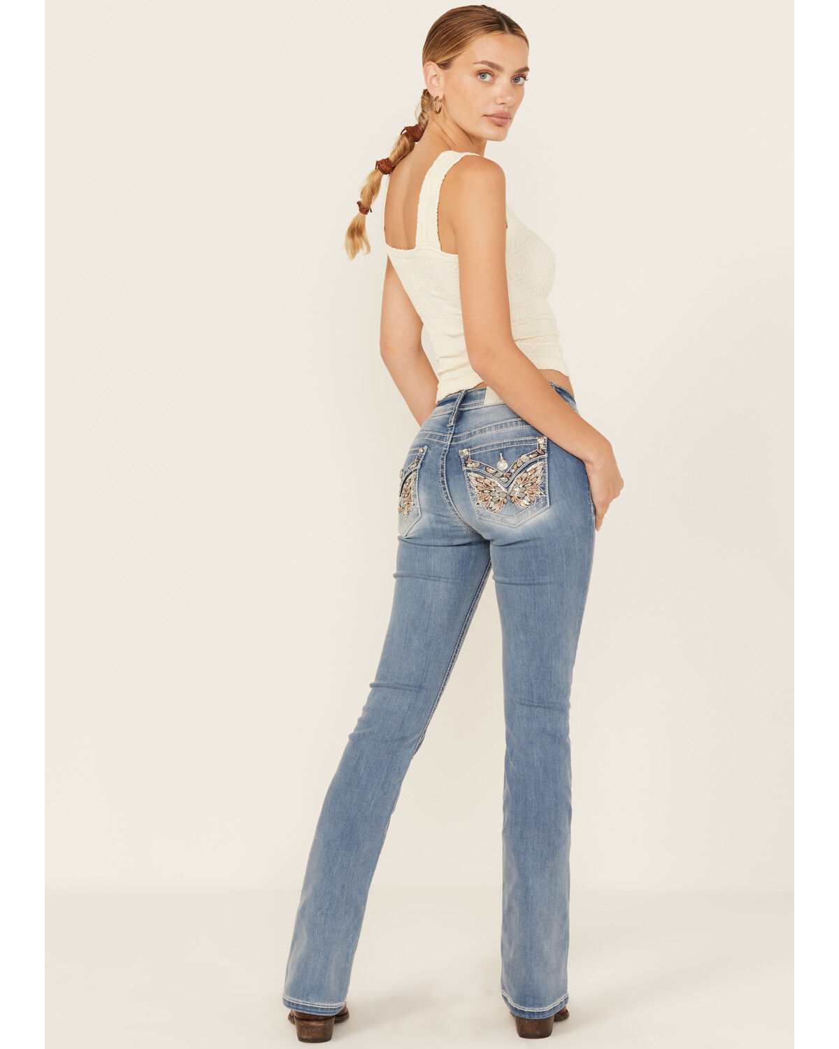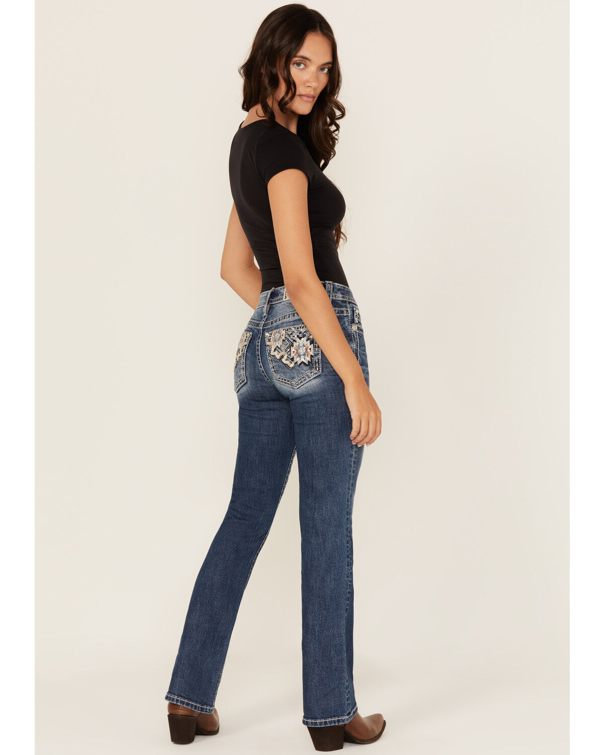 Miss Me Women's Medium Wash Embroidered Bootcut Stretch Denim Jeans