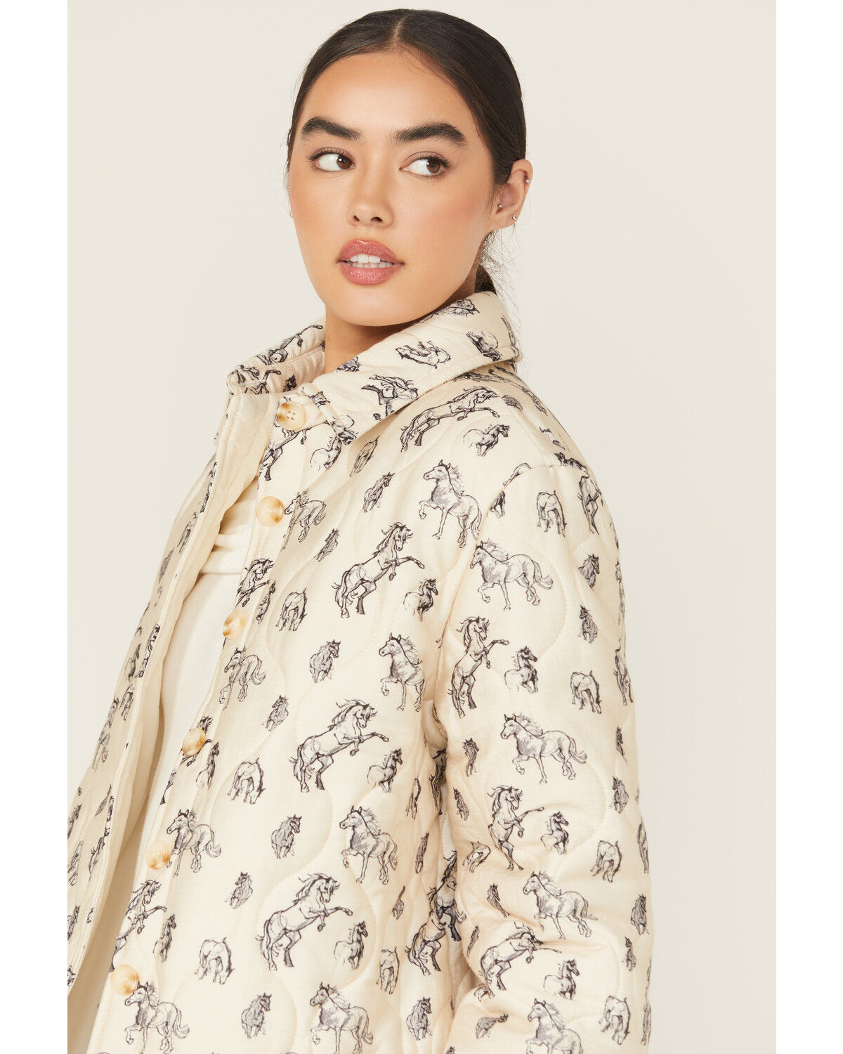 Blue B Women's Quilted Horse Print Button-Down Jacket