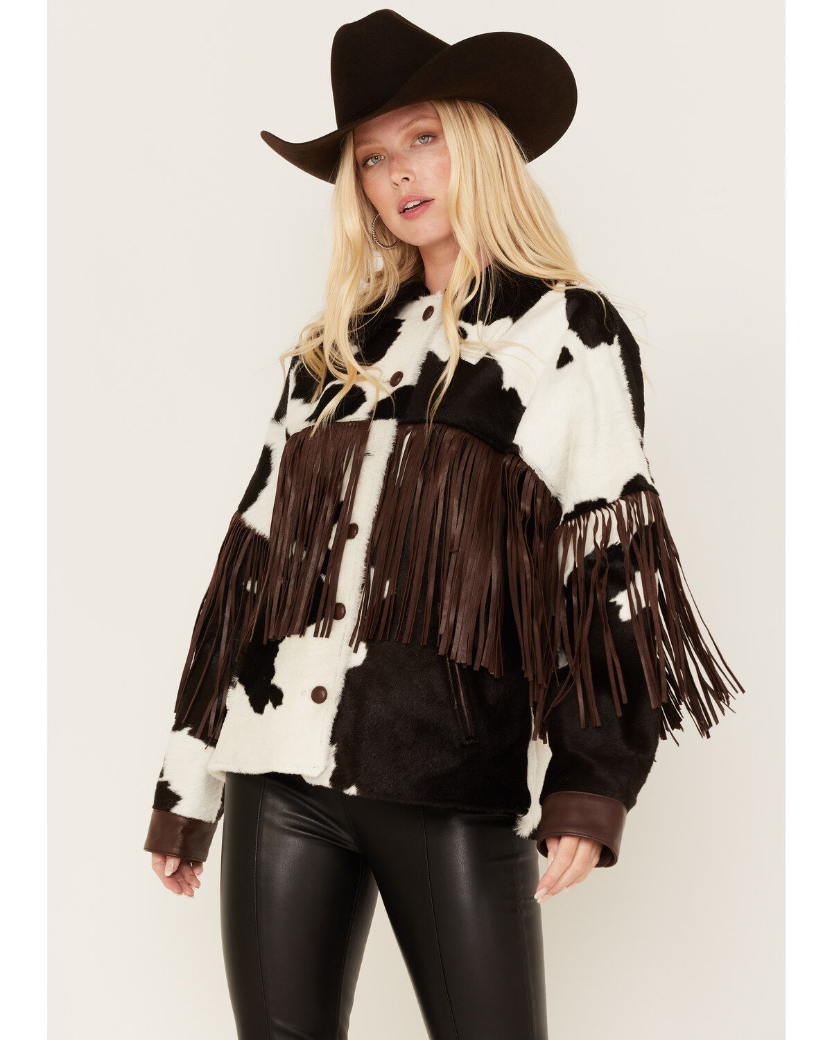 DANCASSAB Women's Taylor Hair-On Hide Fringe Jacket