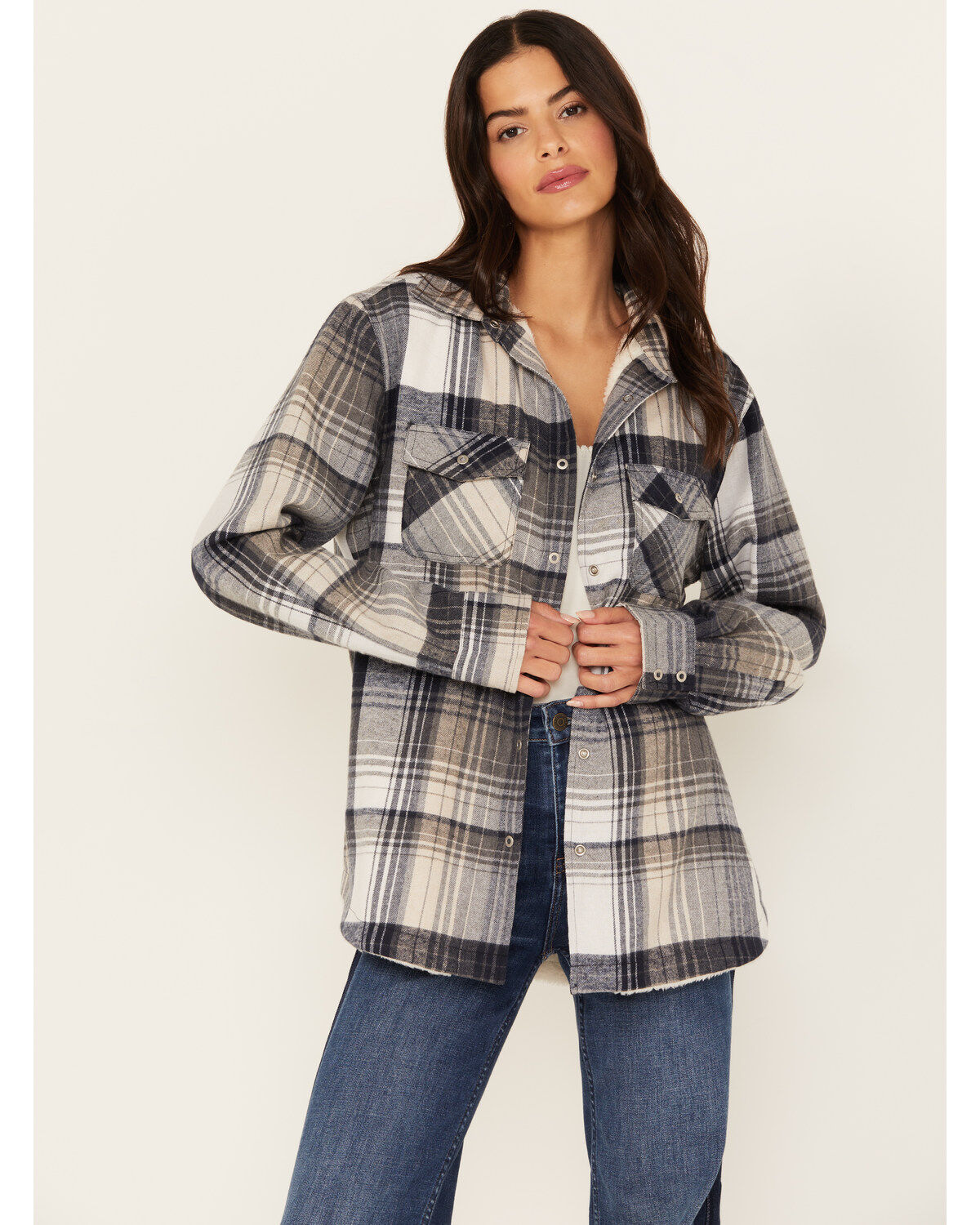 Pacific Teaze Women's Plaid Print Sherpa Lined Shacket