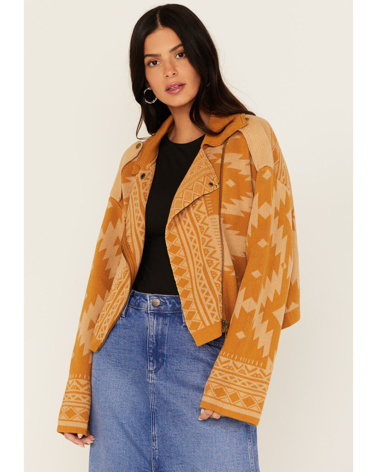 Miss Me Women's Southwestern Print Knit Moto Jacket