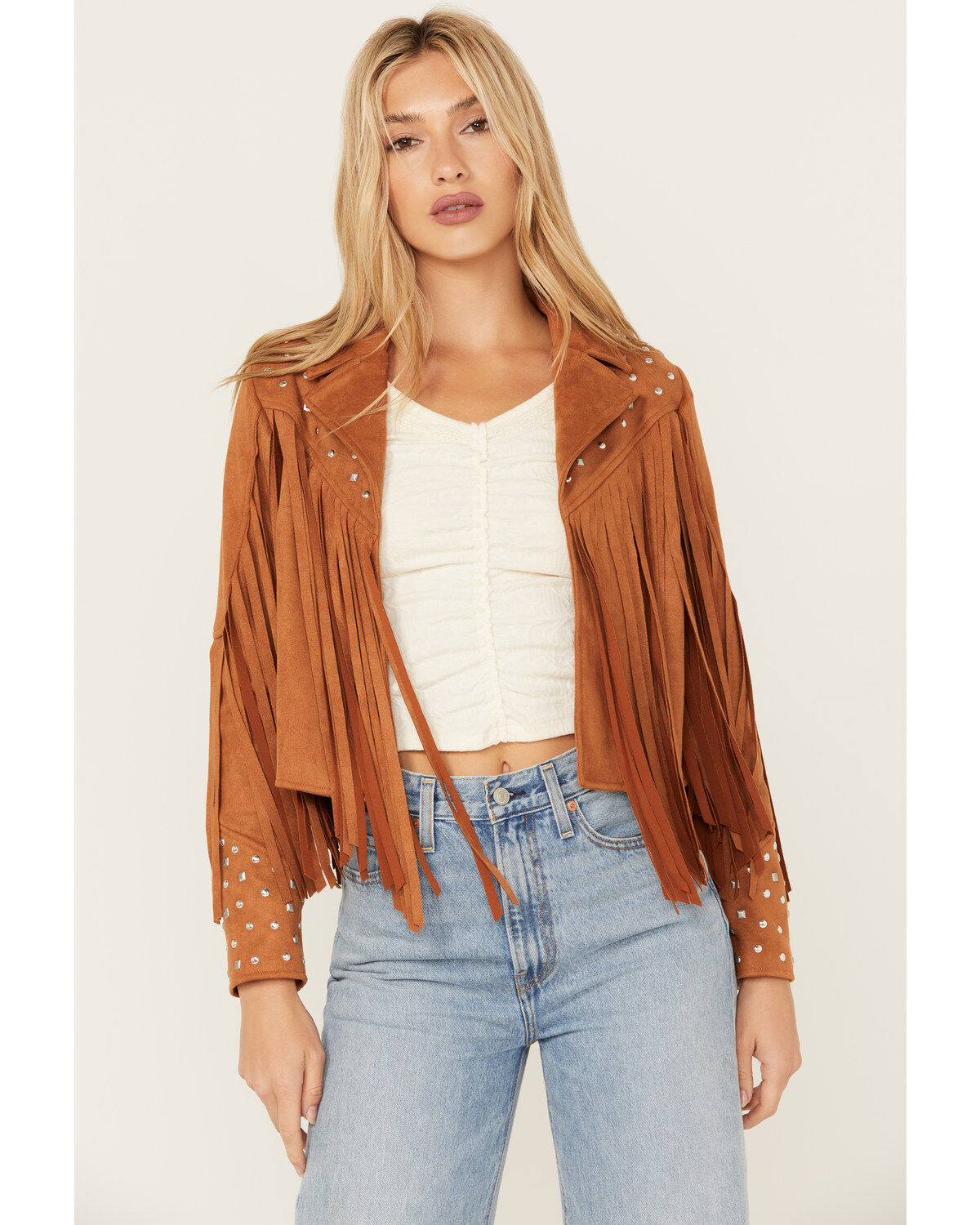 Blue B Women's Studded Fringe Faux Suede Jacket