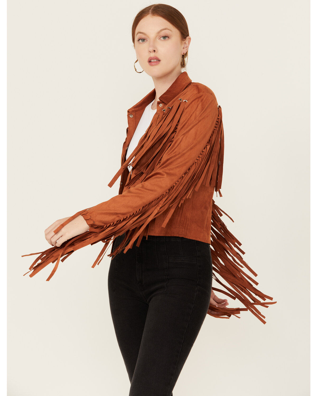 Blue B Women's Grommet Faux Suede Fringe Jacket